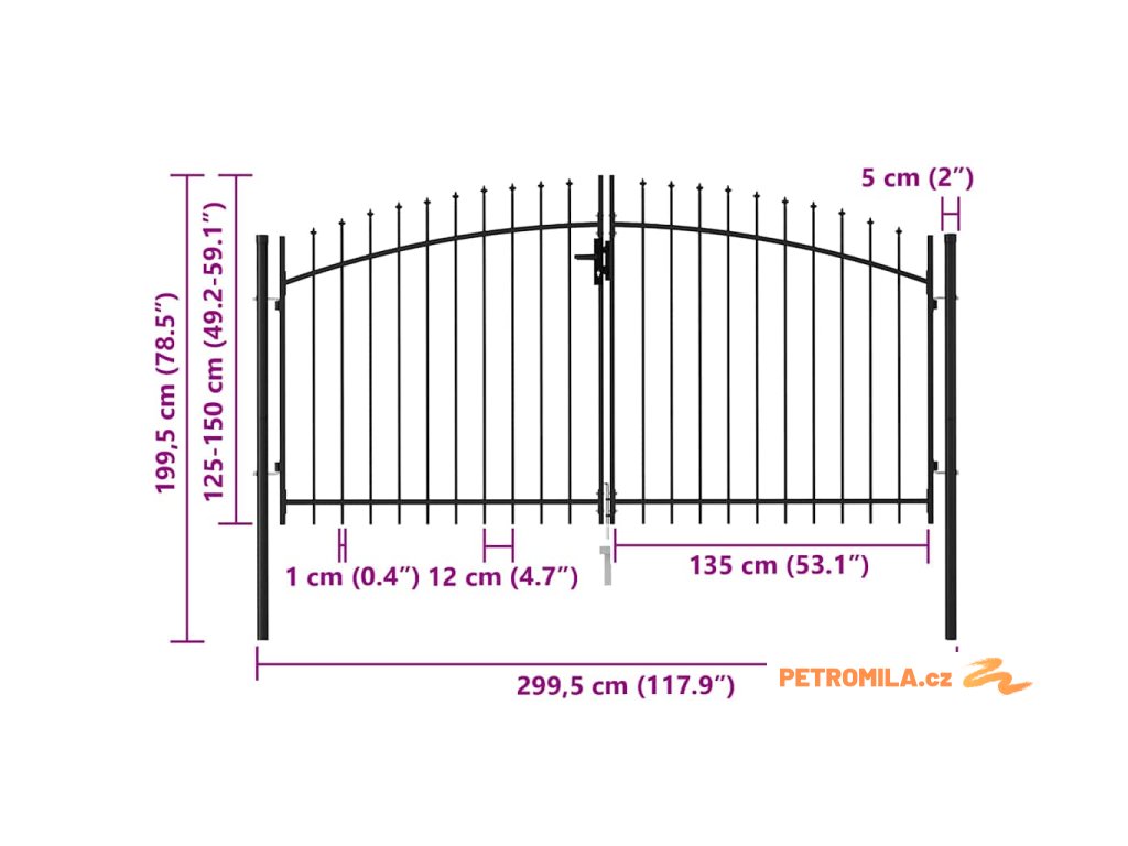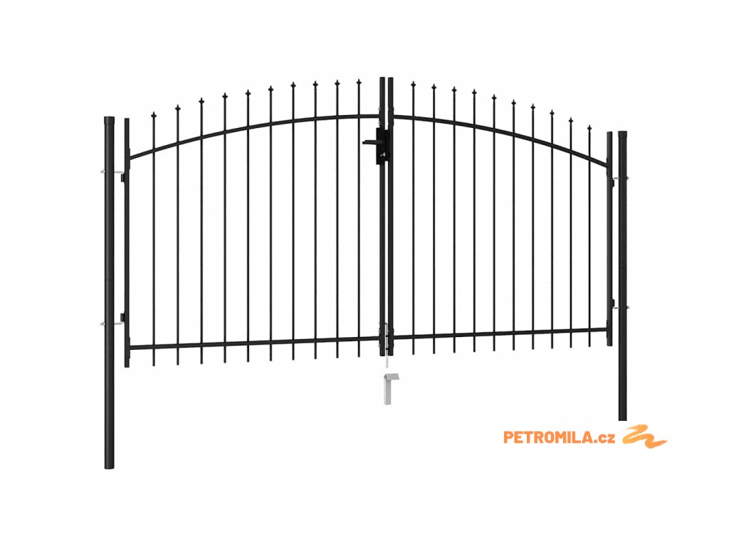 Dvoukřídlá zahradní brána s hroty ocelová 3 x 1,5 m černá