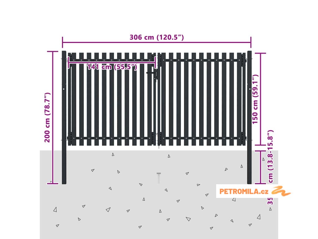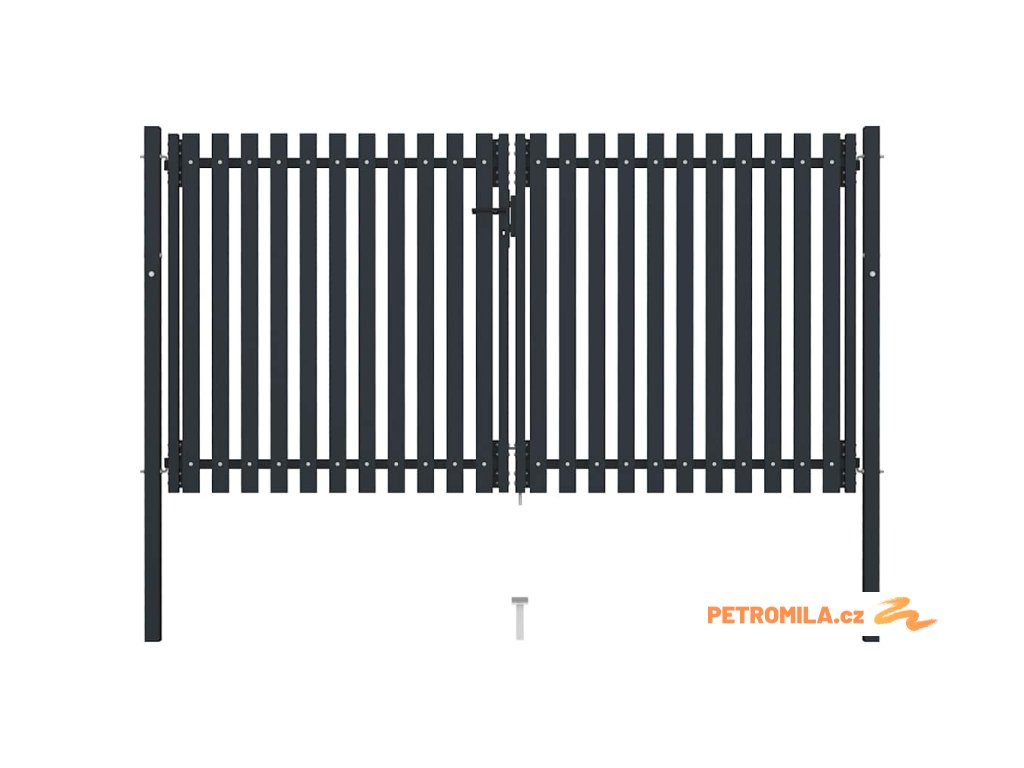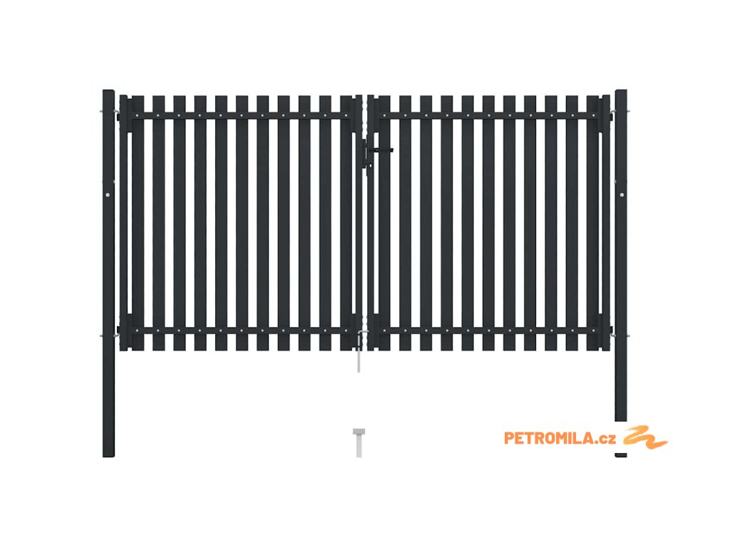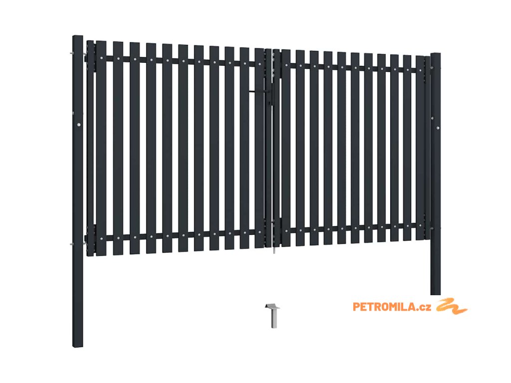 Dvoukřídlé plotové brány s ocelovými dveřmi 300 x 150 cm antracitové