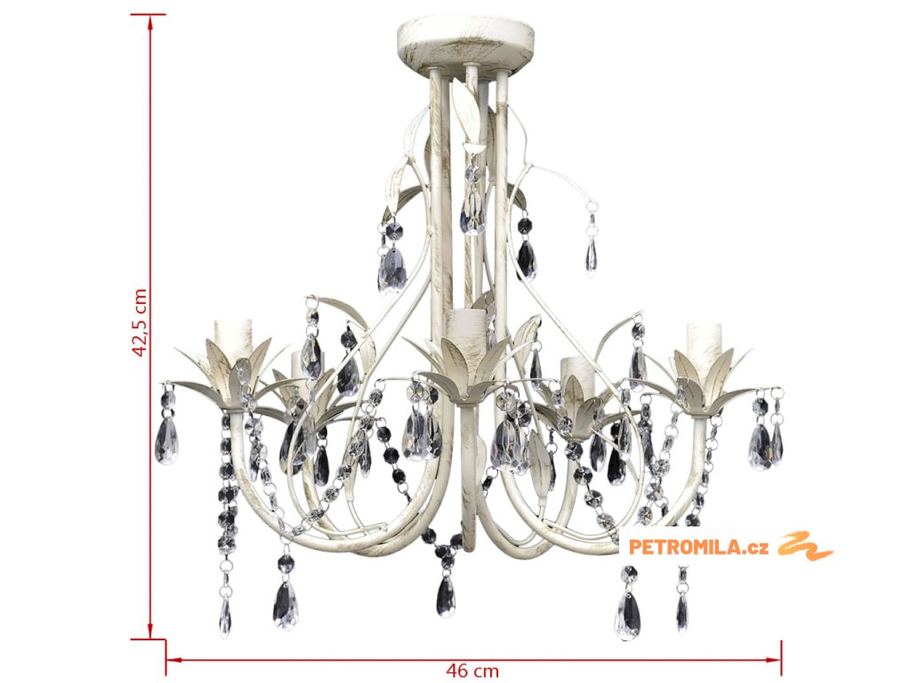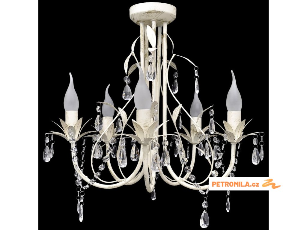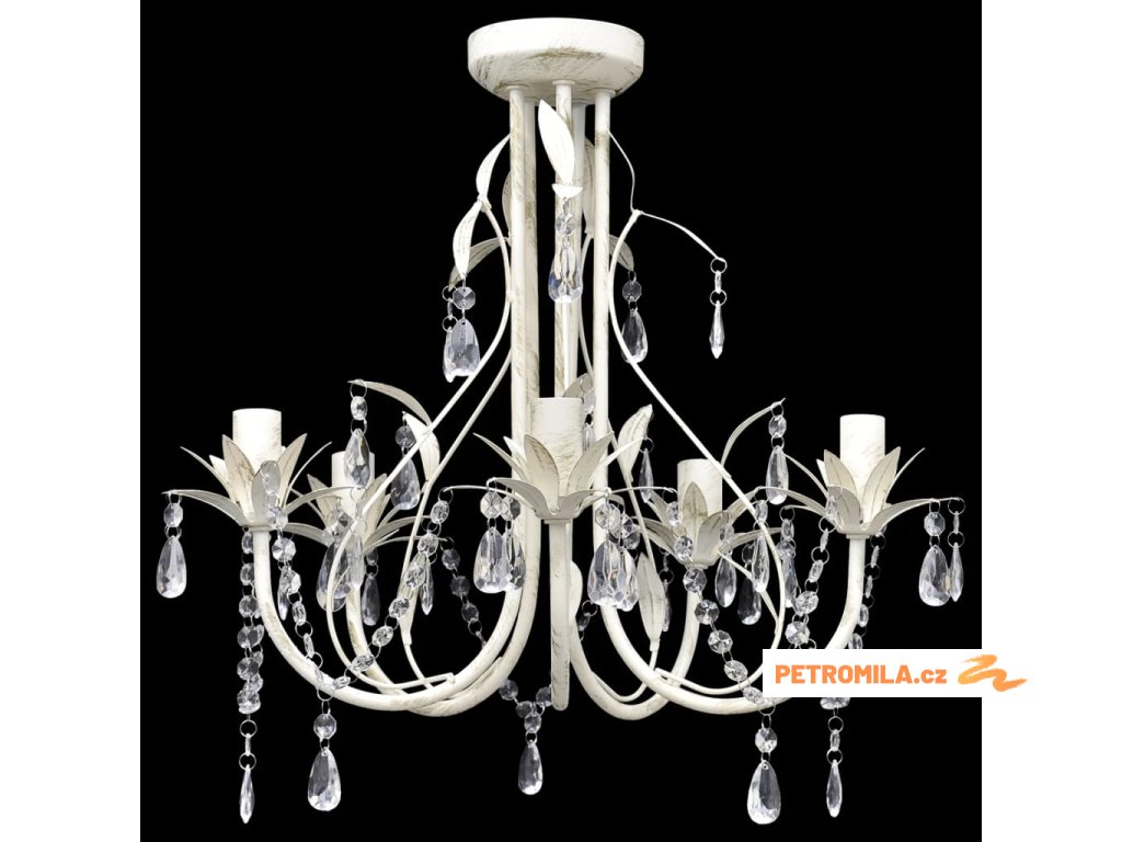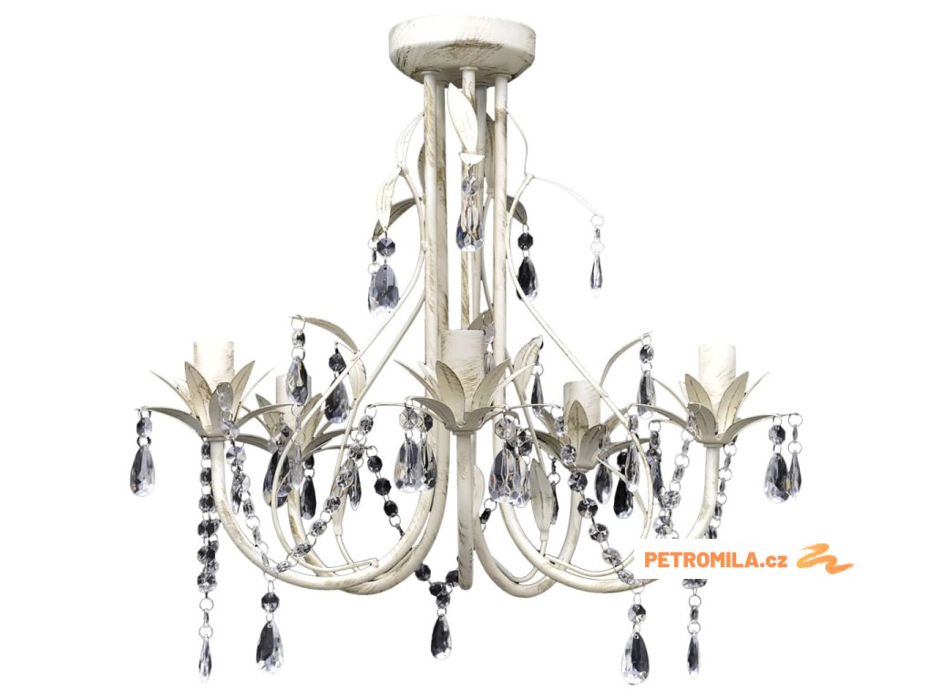 Elegantní, křišťálový lustr bílý na pět žárovek