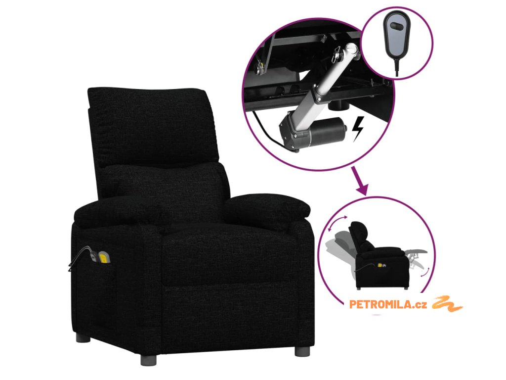 Elektrické masážní křeslo černé textil