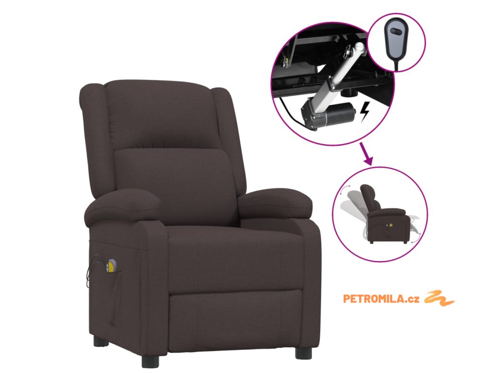 Elektrické masážní křeslo tmavě hnědé textil
