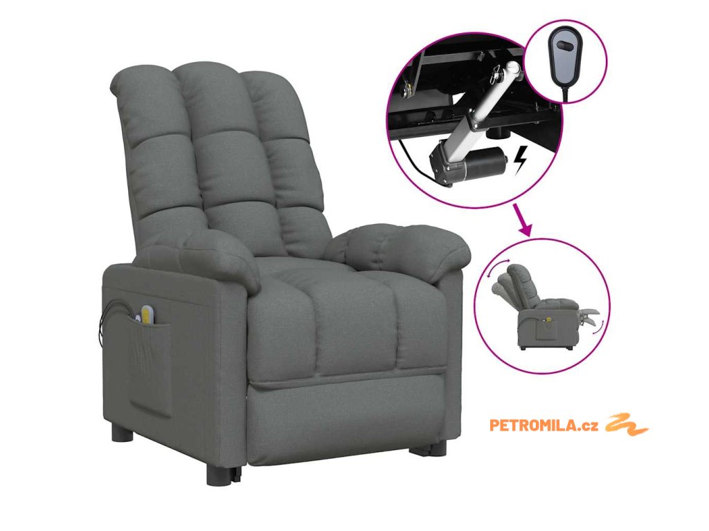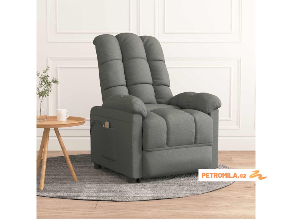 Elektrické masážní křeslo tmavě šedé textil