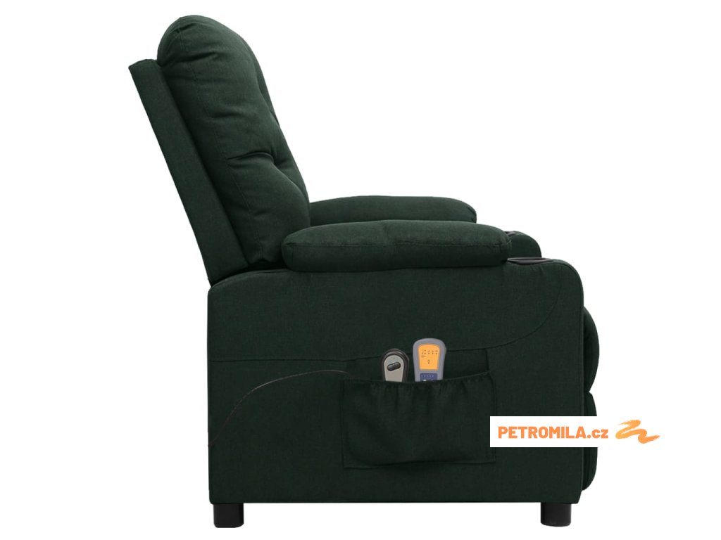 Elektrické masážní křeslo tmavě zelené textil