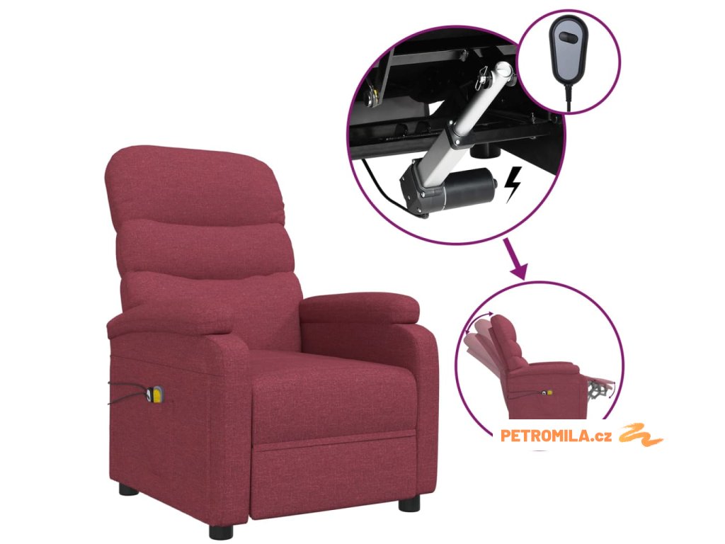 Elektrické masážní křeslo vínové textil