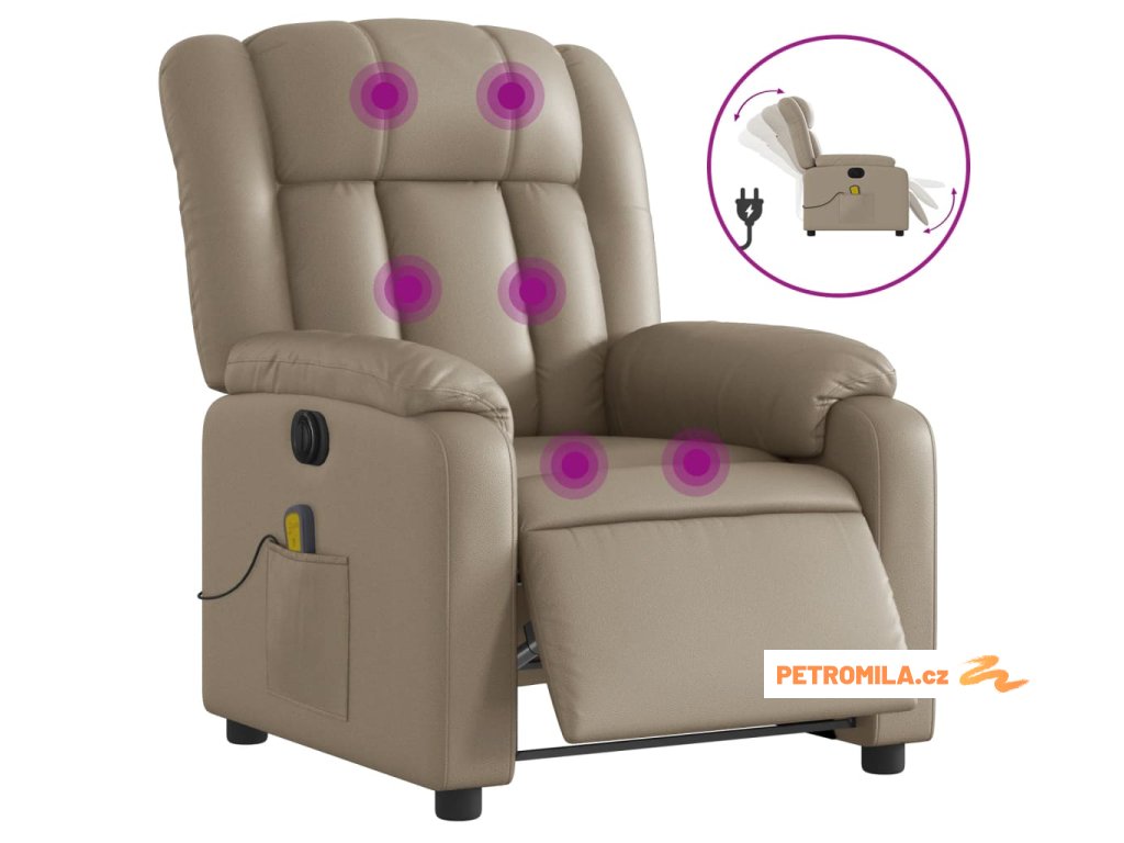 Elektrické masážní polohovací křeslo cappuccino umělá kůže