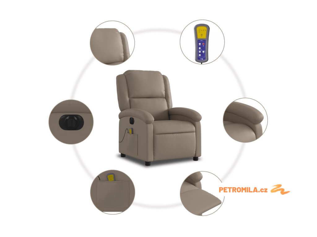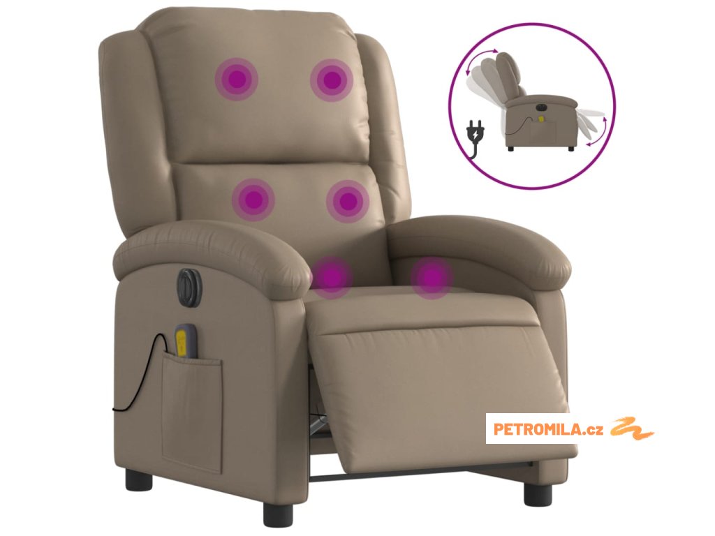 Elektrické masážní polohovací křeslo cappuccino umělá kůže