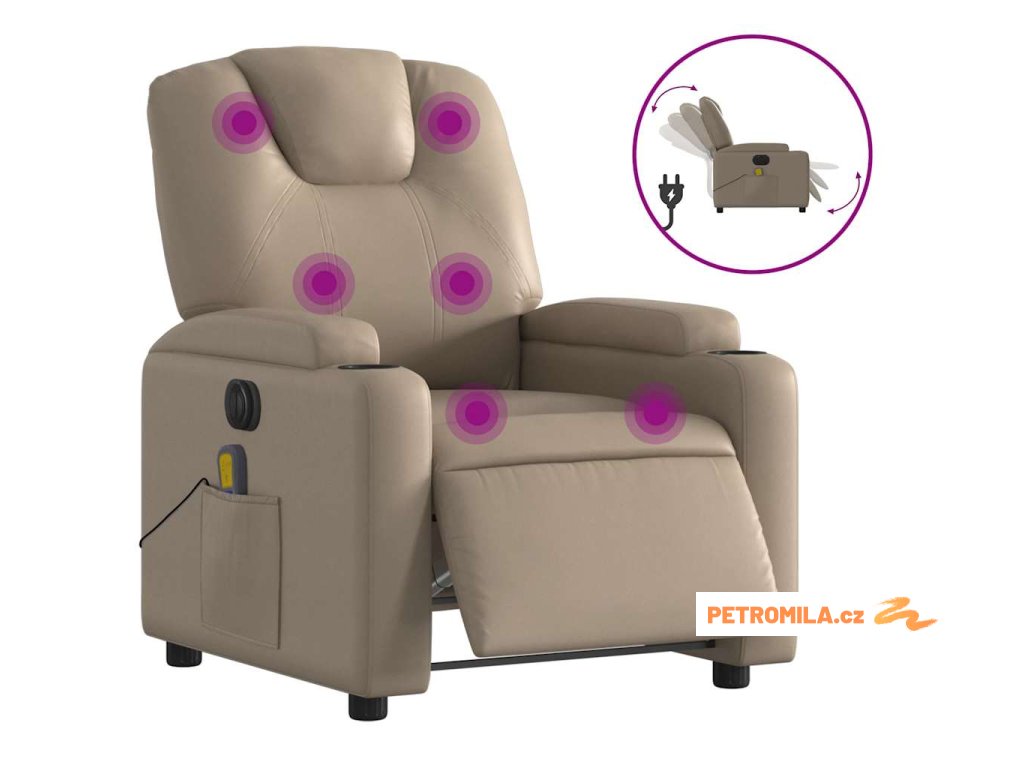 Elektrické masážní polohovací křeslo cappuccino umělá kůže