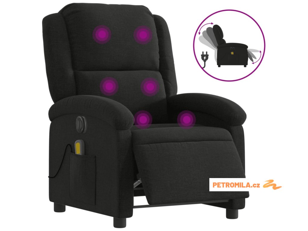 Elektrické zvedací masážní polohovací křeslo tmavě šedé textil