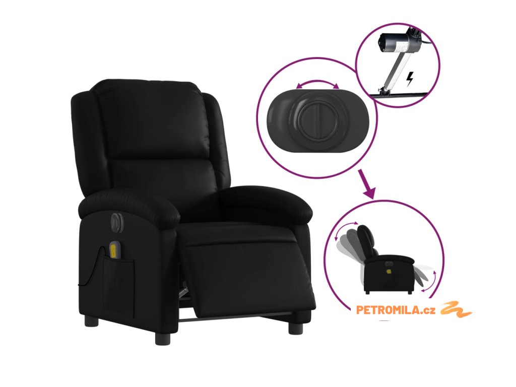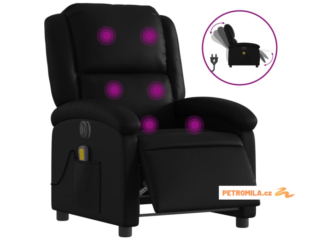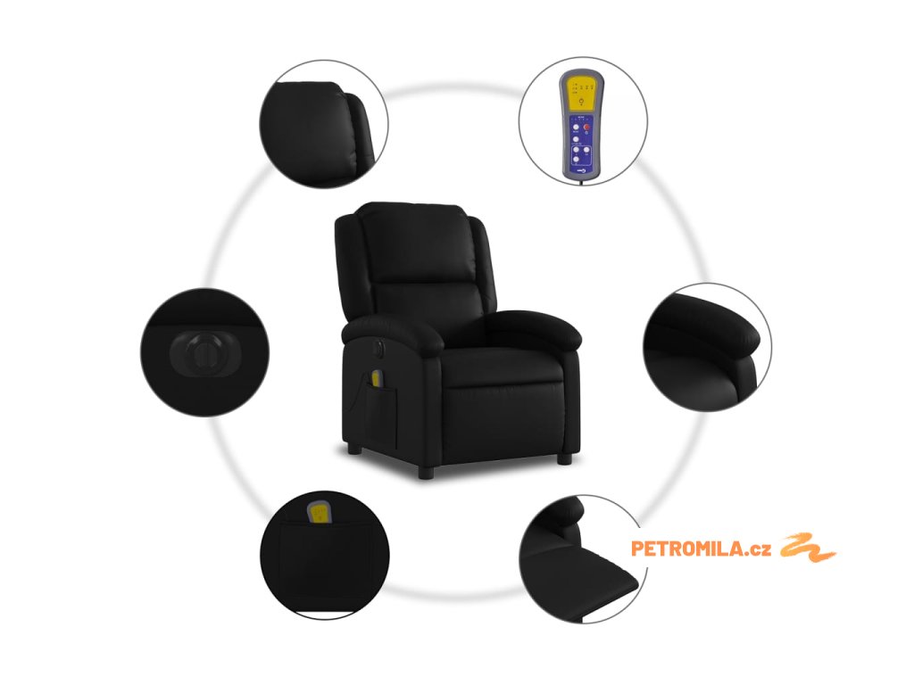Elektrické masážní polohovací křeslo černé umělá kůže