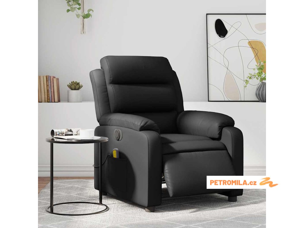 Elektrické masážní polohovací křeslo černé umělá kůže