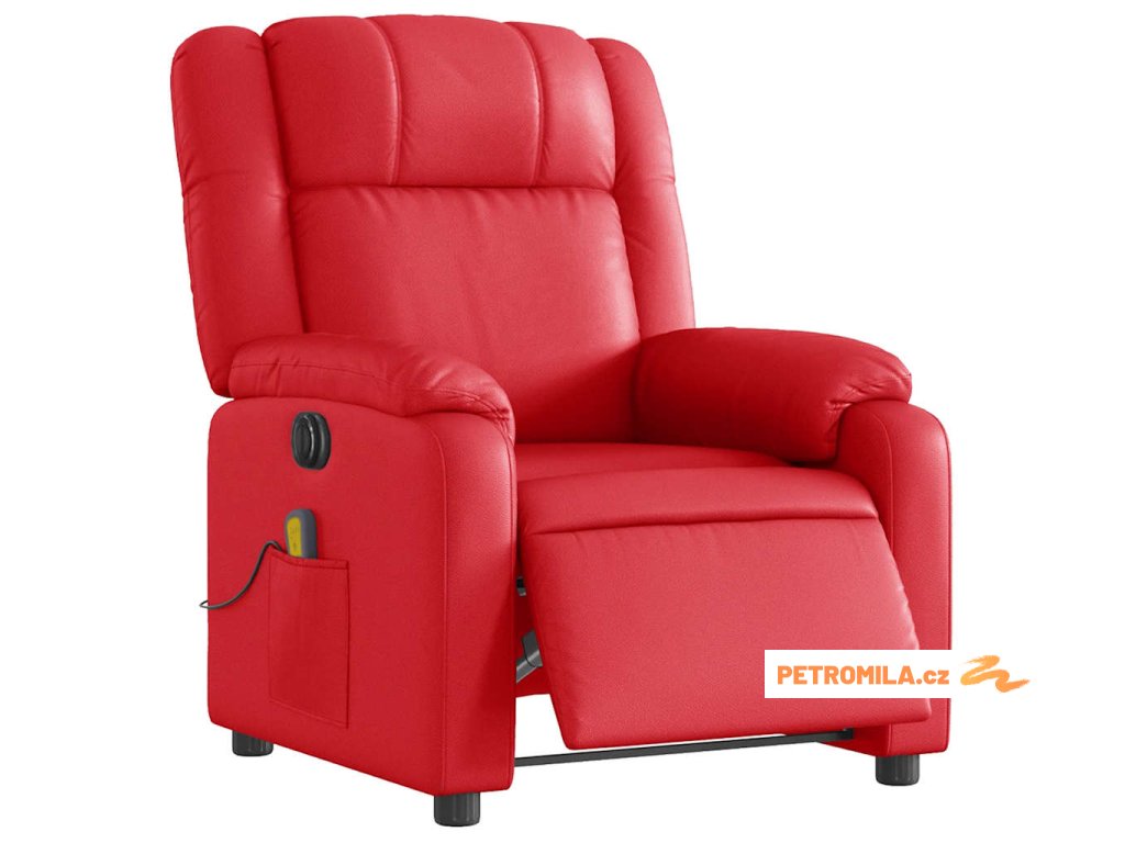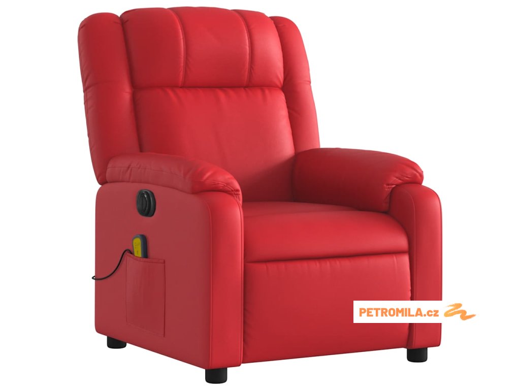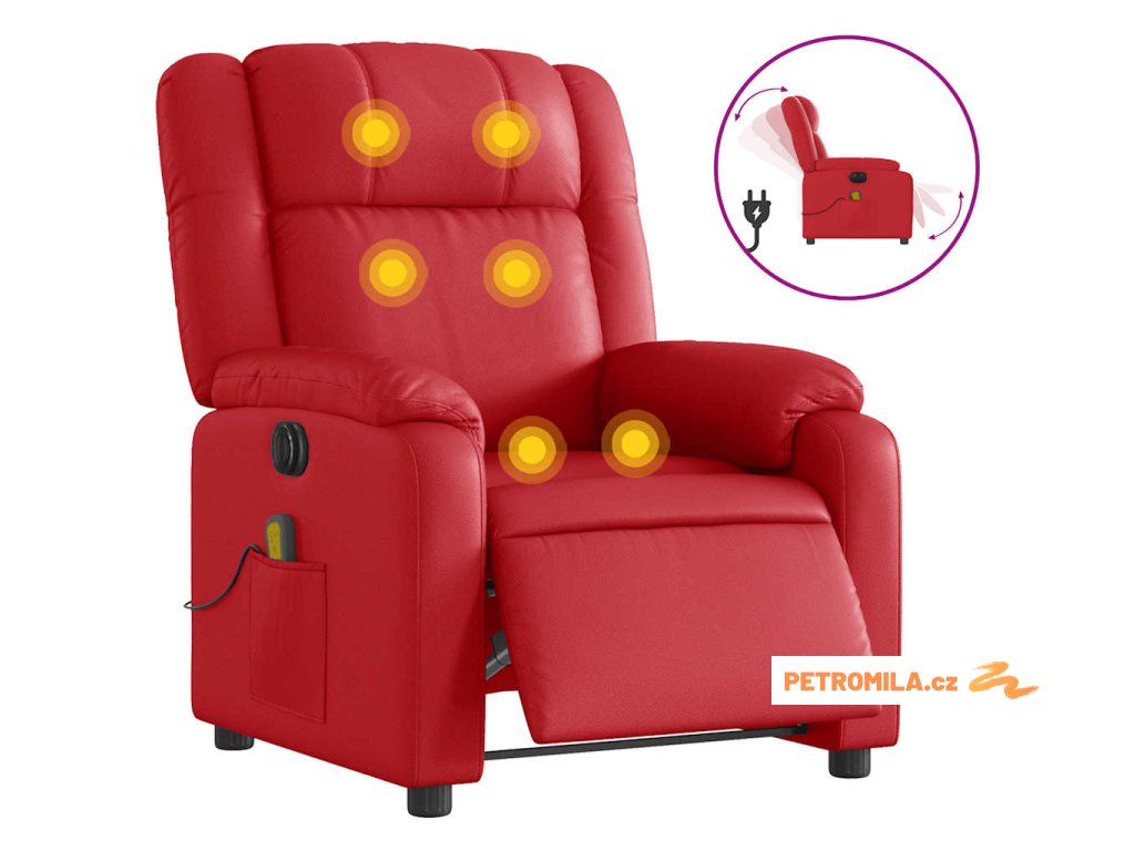 Zvedací masážní polohovací křeslo červené umělá kůže