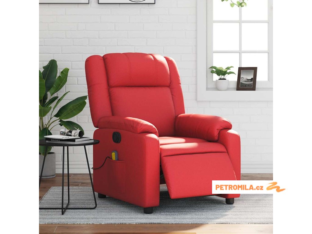 Elektrické masážní polohovací křeslo červené umělá kůže