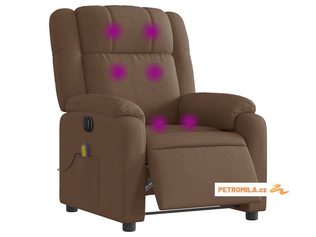 Zvedací masážní polohovací křeslo tmavě hnědé textil
