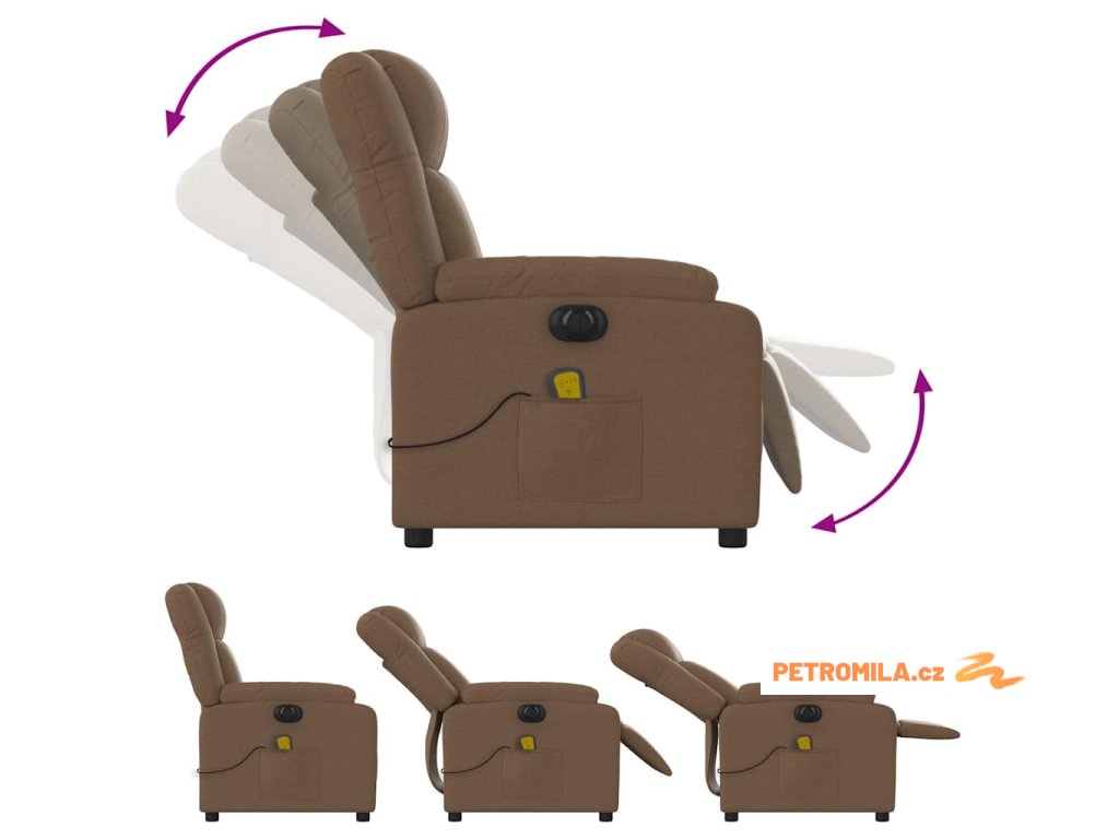 Zvedací masážní polohovací křeslo hnědé textil