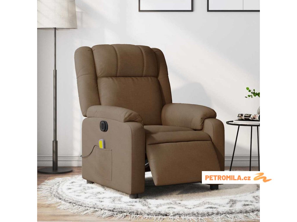 Elektrické masážní polohovací křeslo hnědé textil