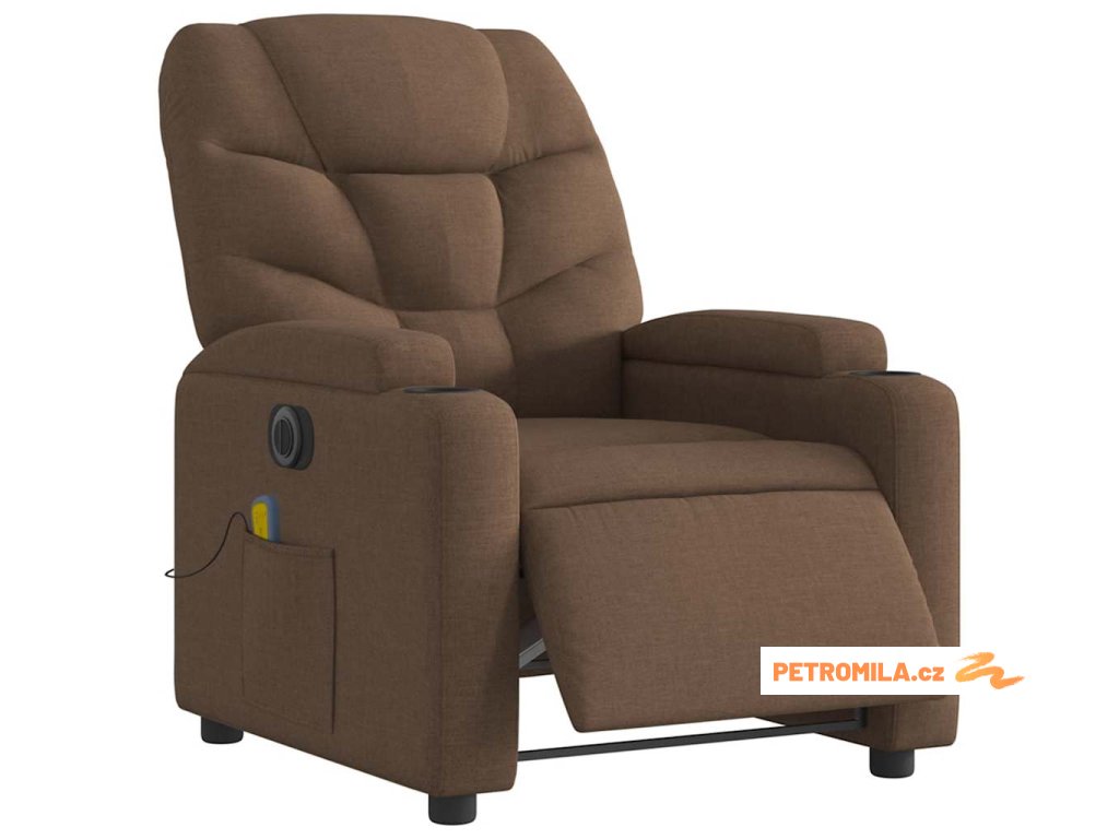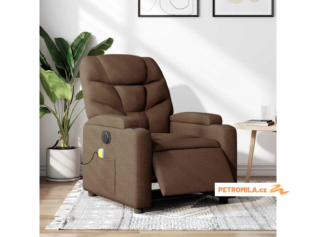 Elektrické masážní polohovací křeslo tmavě hnědé textil