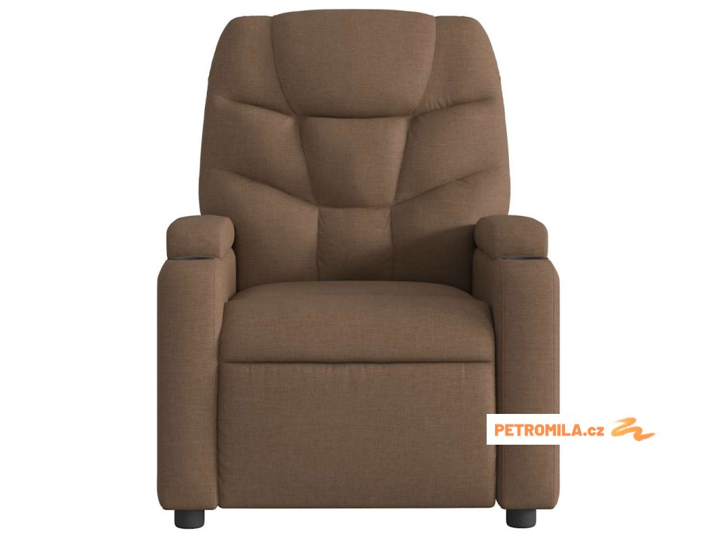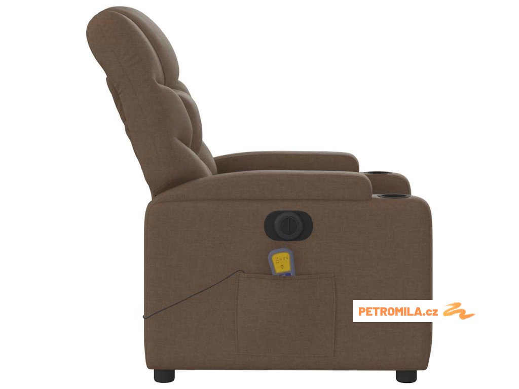 Zvedací masážní polohovací křeslo tmavě hnědé textil