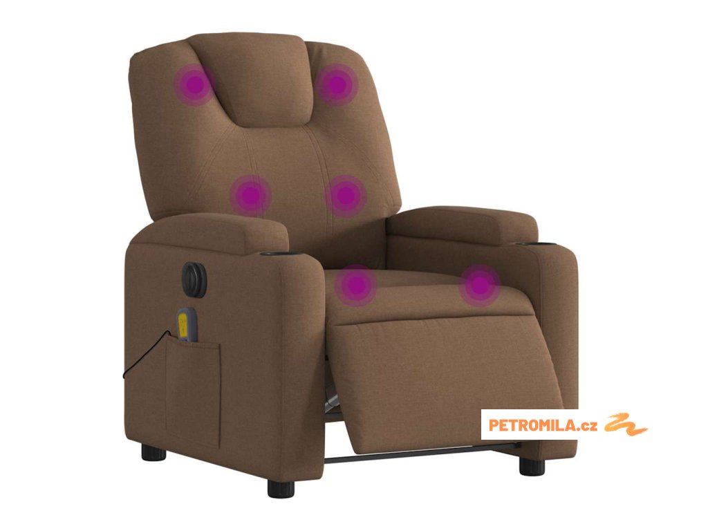 Elektrické zvedací masážní polohovací křeslo tmavě šedé textil