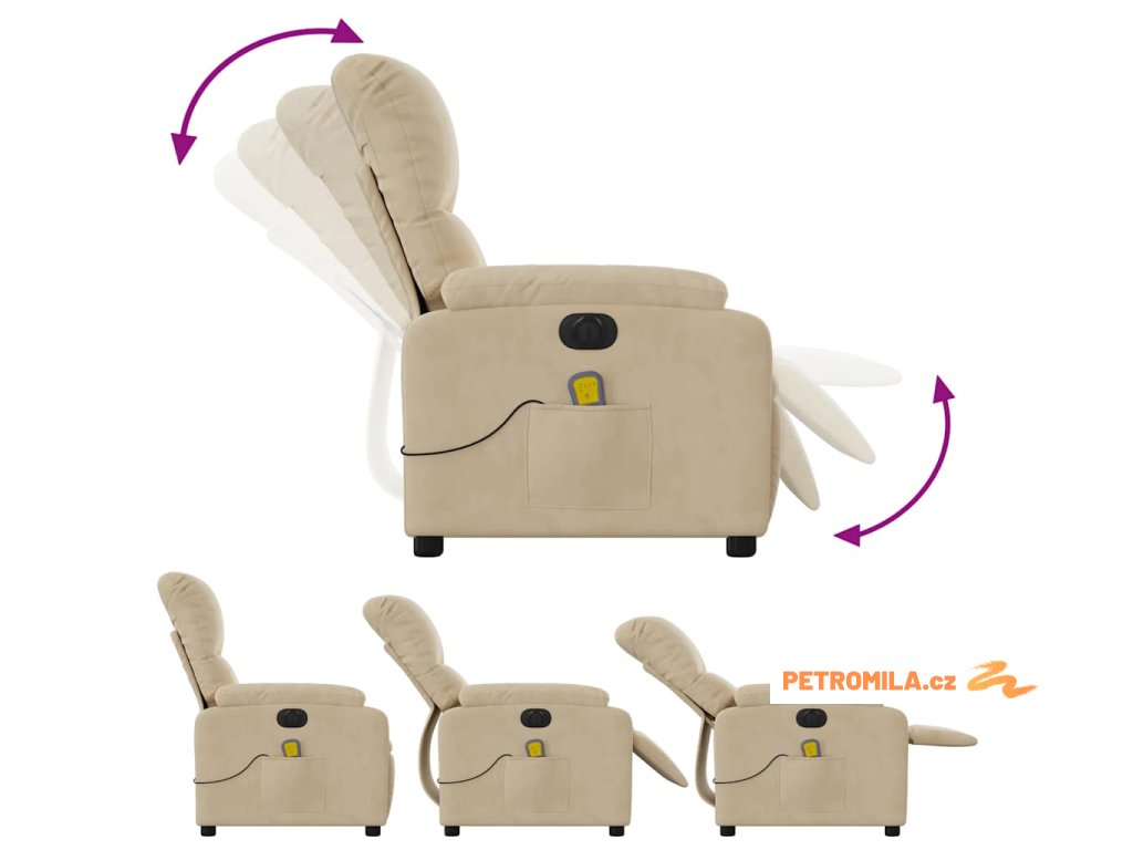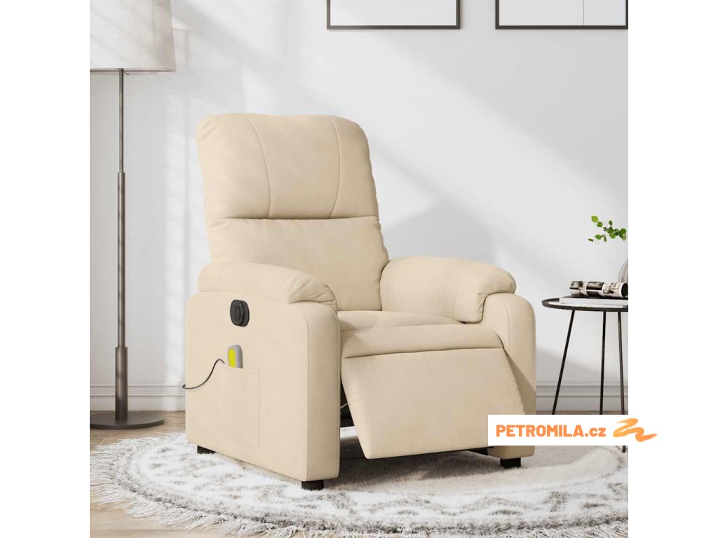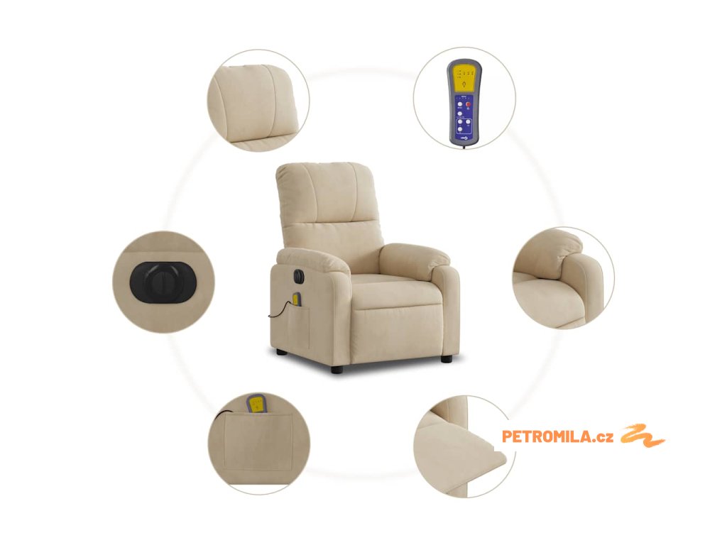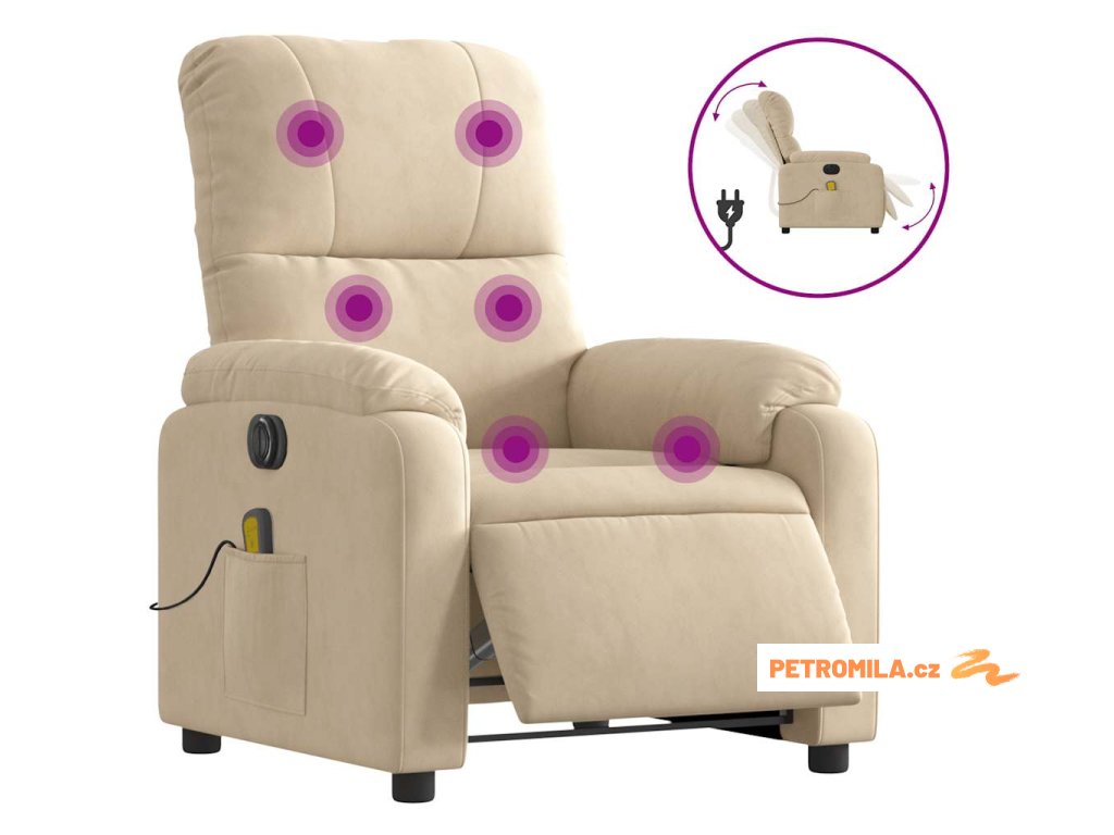 Elektrické masážní polohovací křeslo krémové mikrovlákno