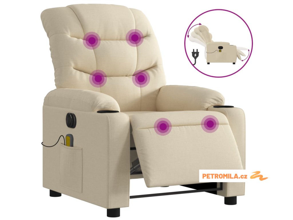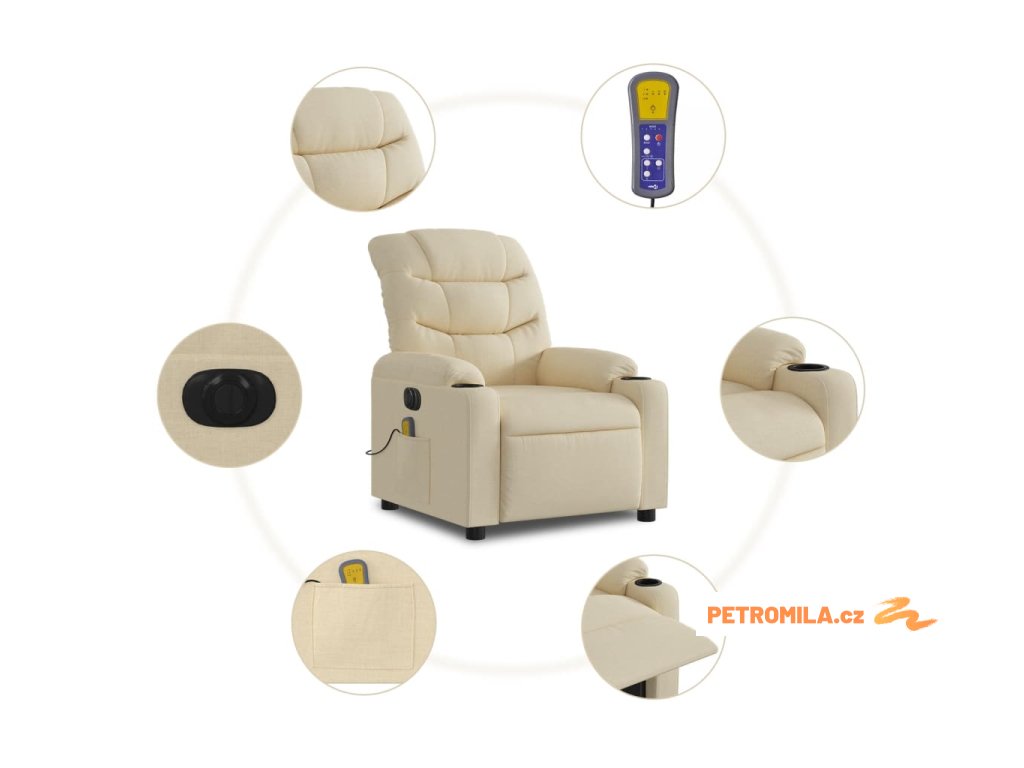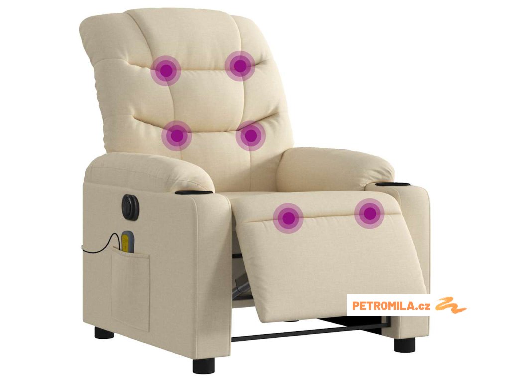 Elektrické zvedací masážní polohovací křeslo hnědé textil