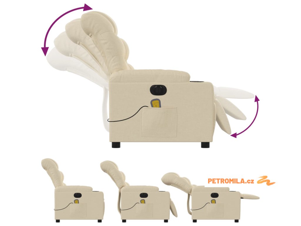 Elektrické zvedací masážní polohovací křeslo světle šedé textil