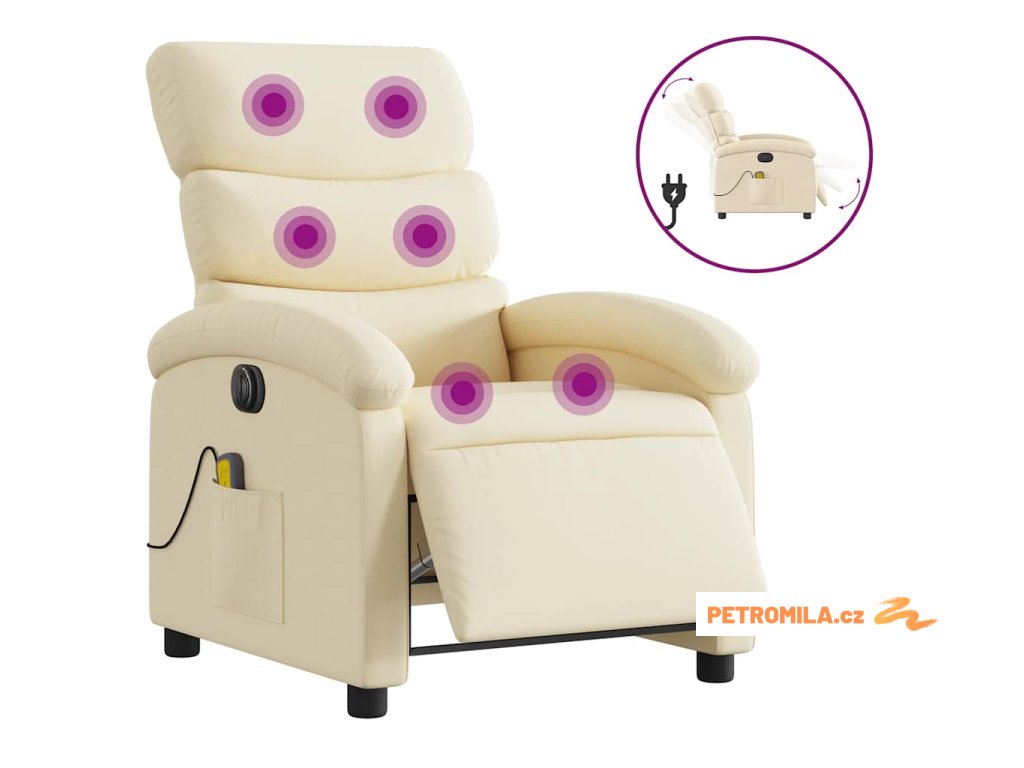 Elektrické masážní polohovací křeslo krémové textil