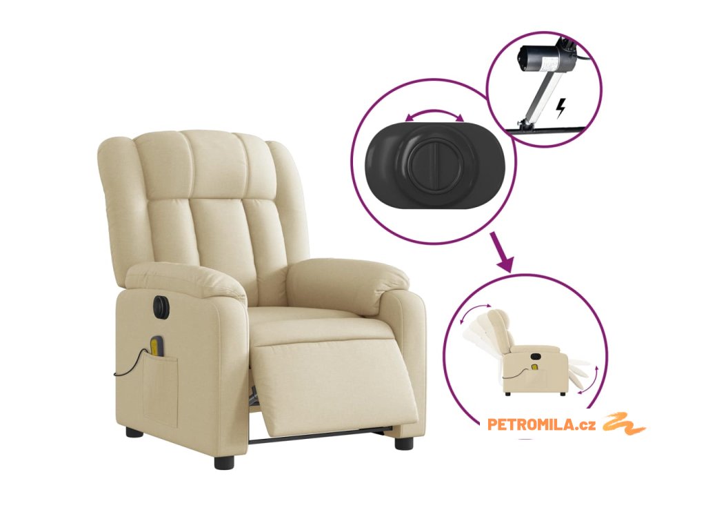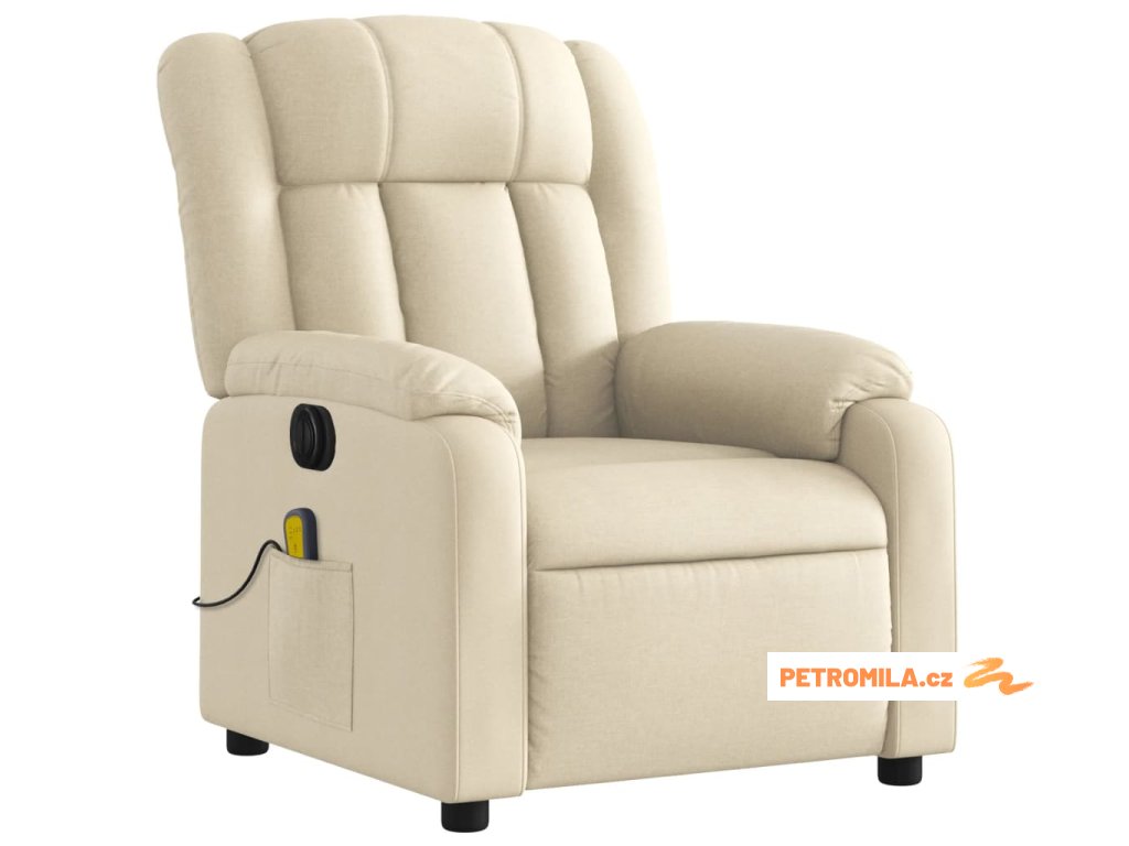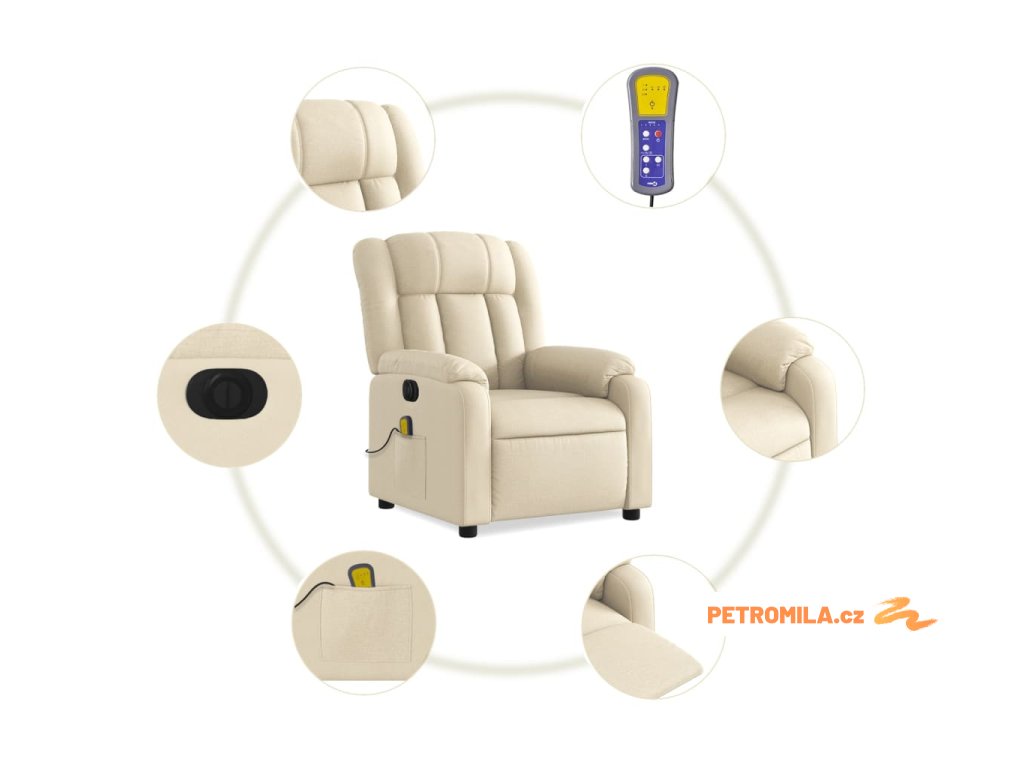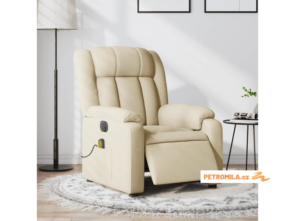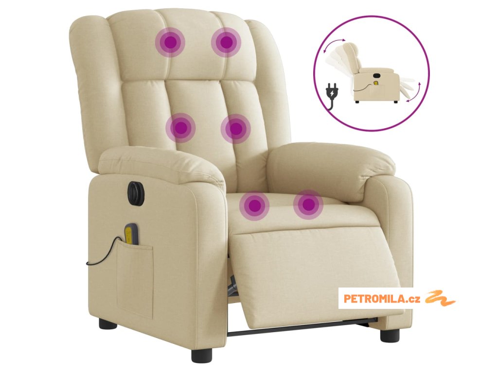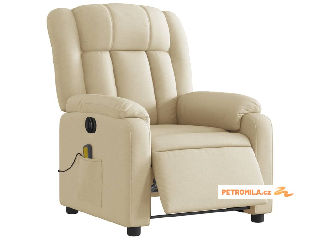 Elektrické masážní polohovací křeslo krémové textil