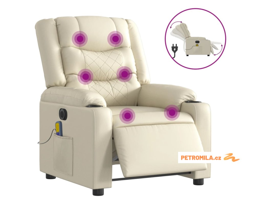 Elektrické masážní polohovací křeslo krémové umělá kůže