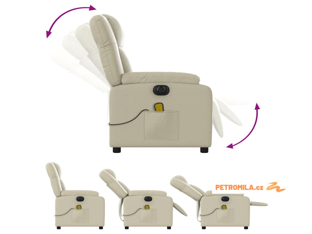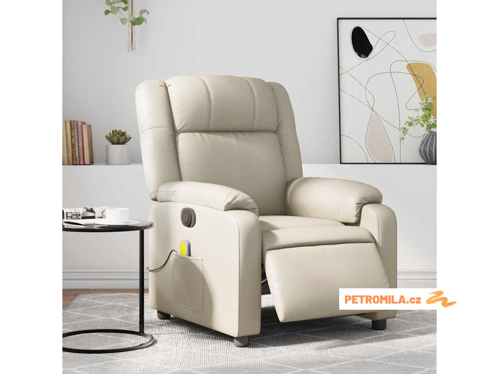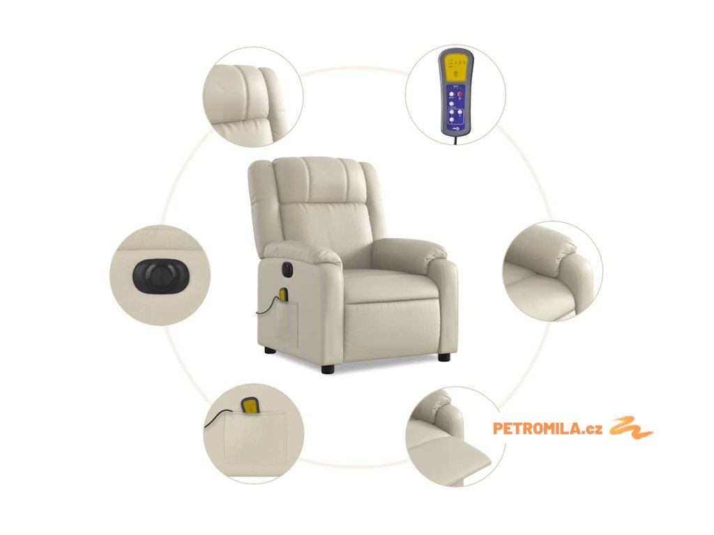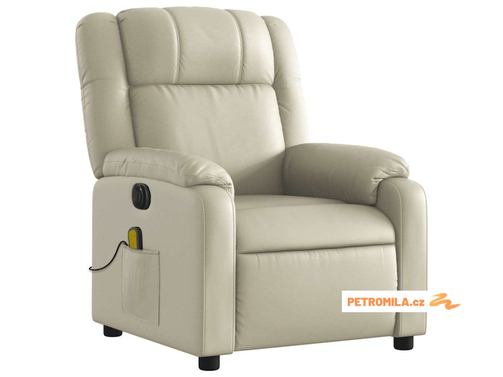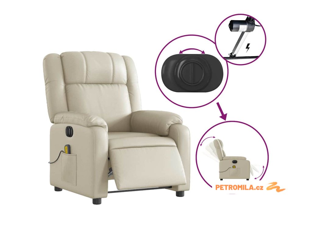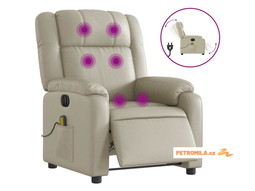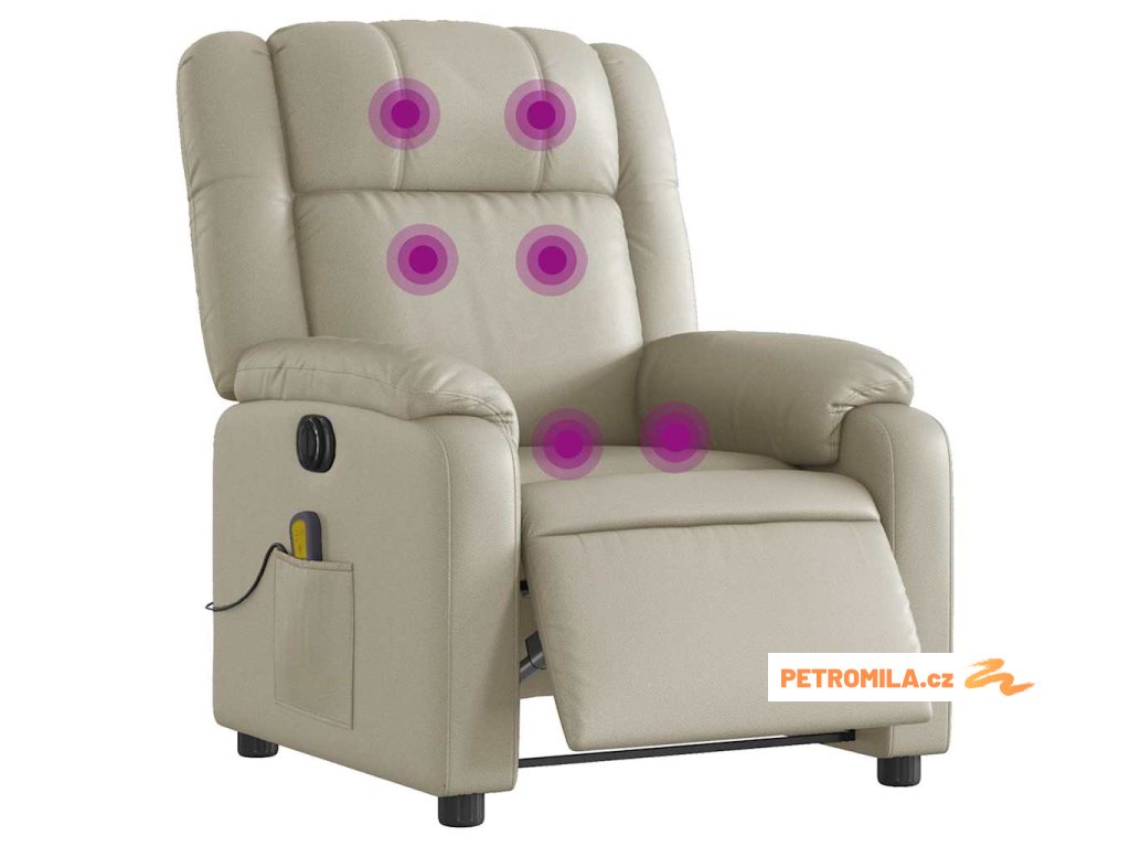 Elektrické masážní polohovací křeslo krémové umělá kůže
