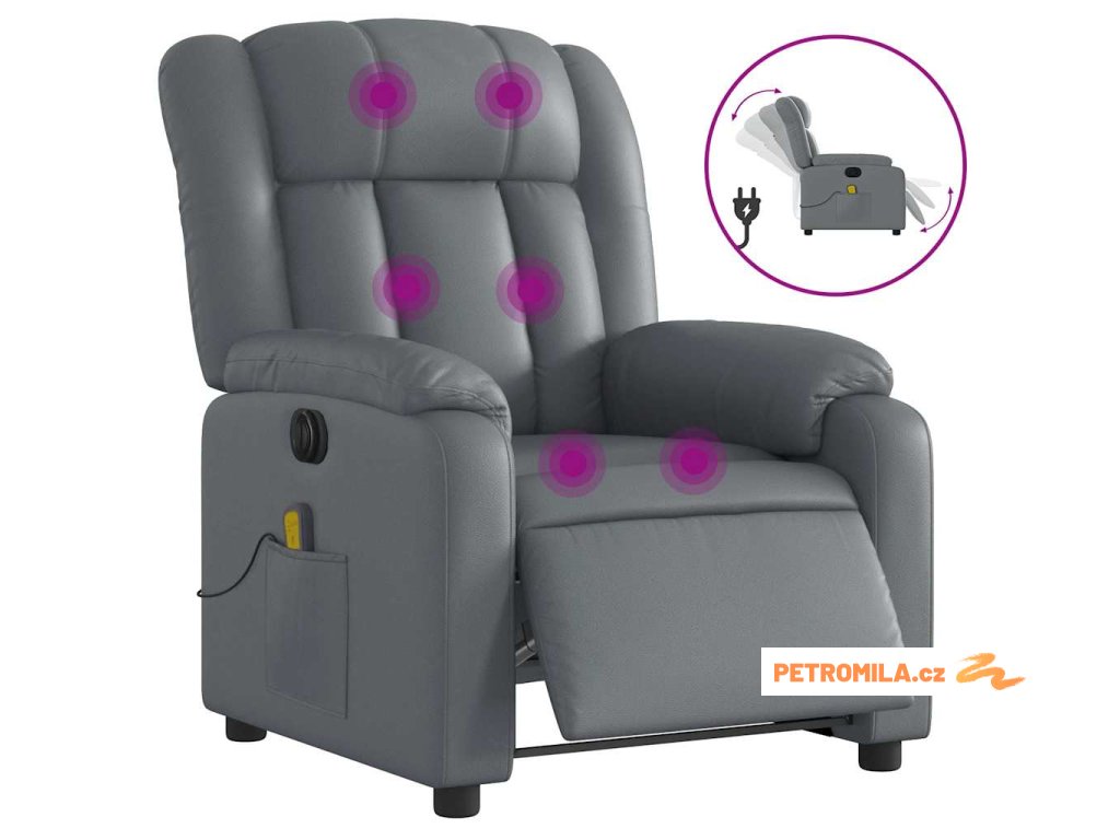 Elektrické masážní polohovací křeslo šedé umělá kůže