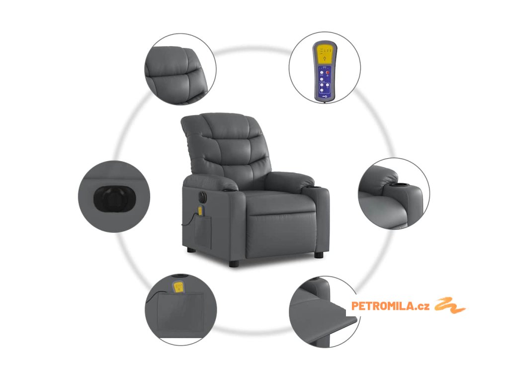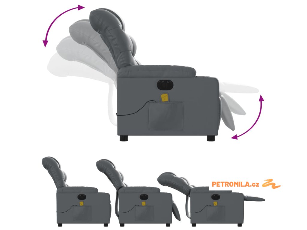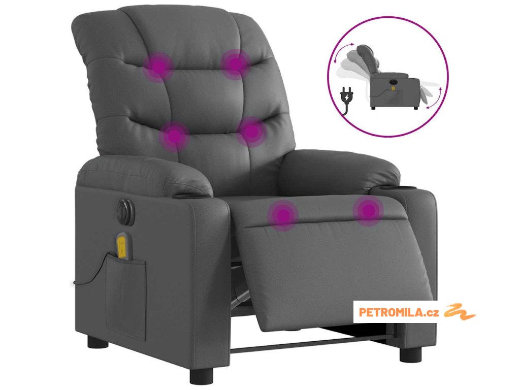 Elektrické masážní polohovací křeslo šedé umělá kůže