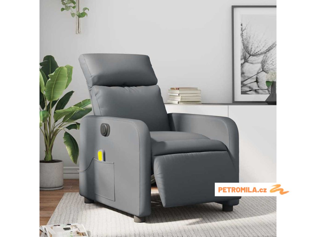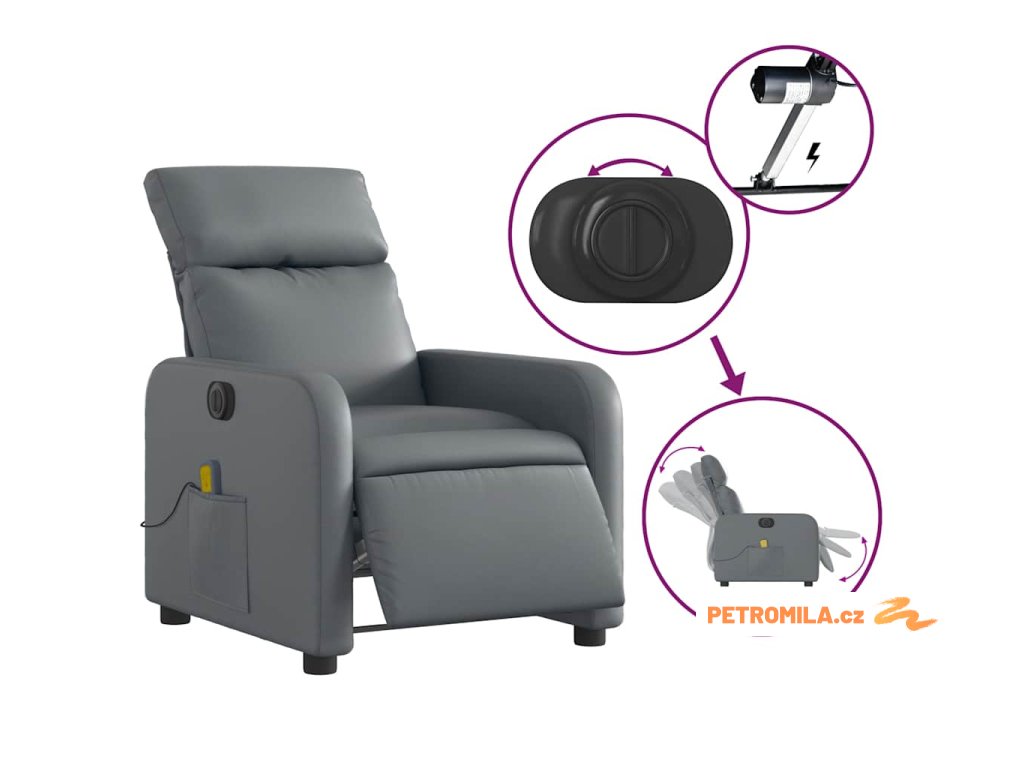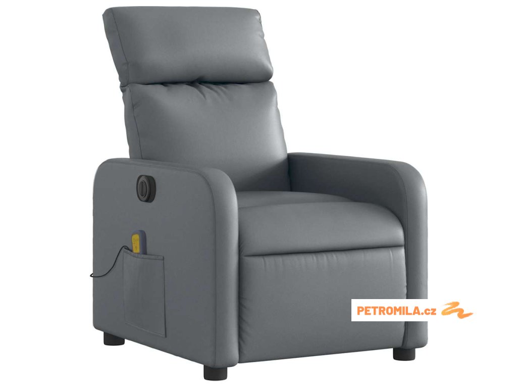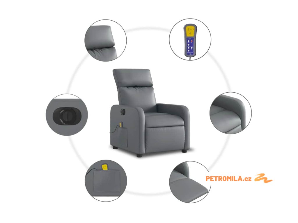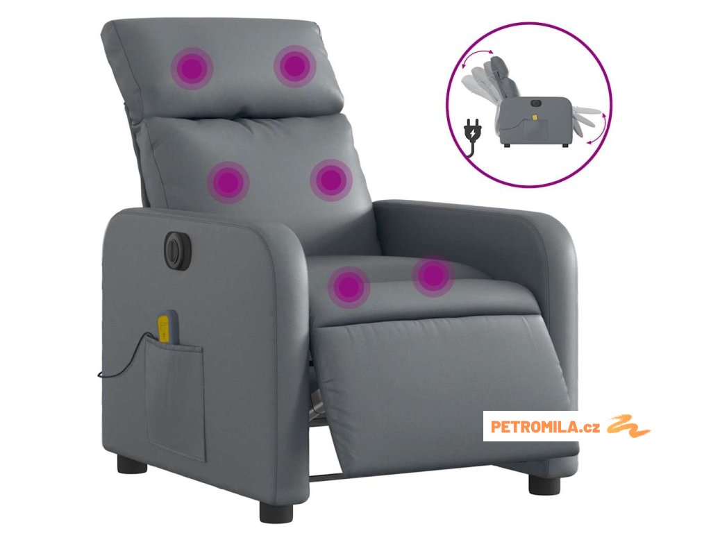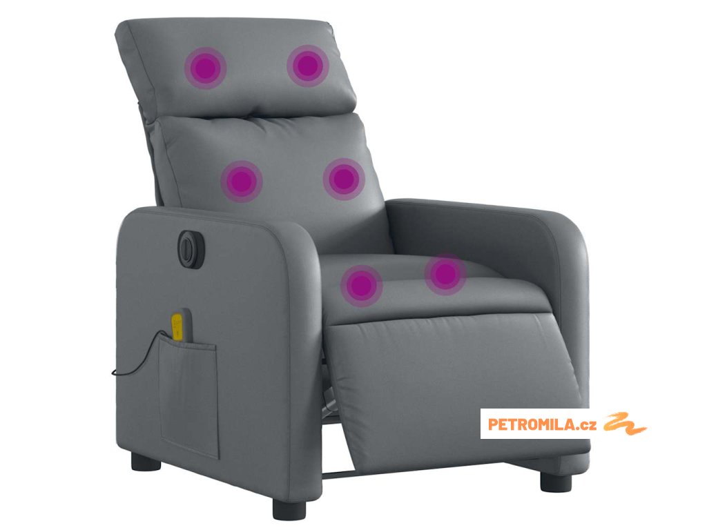 Elektrické masážní polohovací křeslo šedé umělá kůže