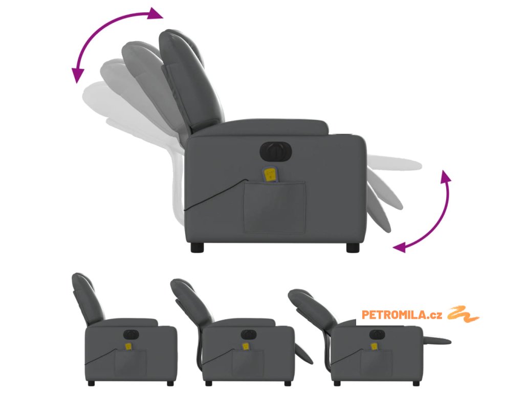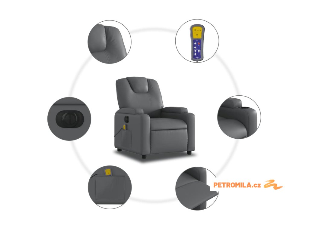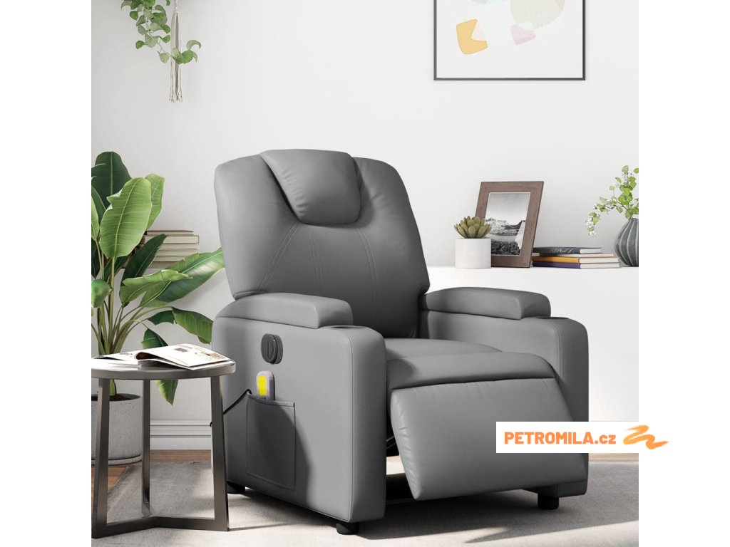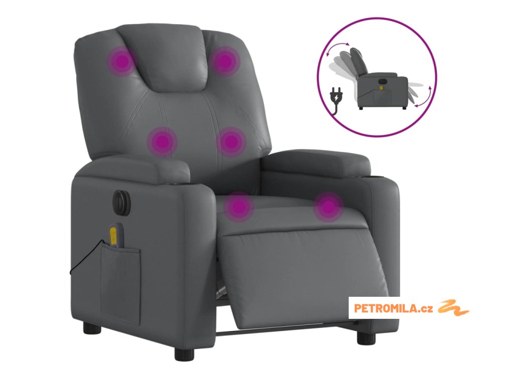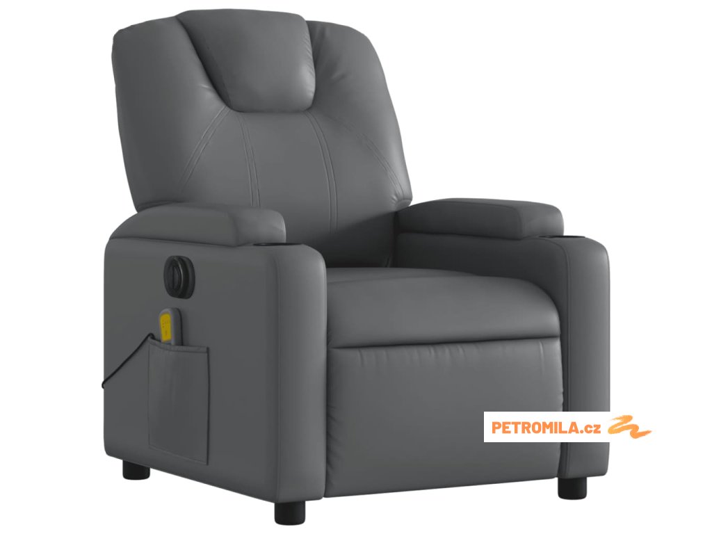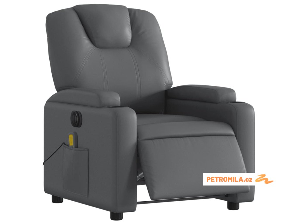Elektrické masážní polohovací křeslo šedé umělá kůže