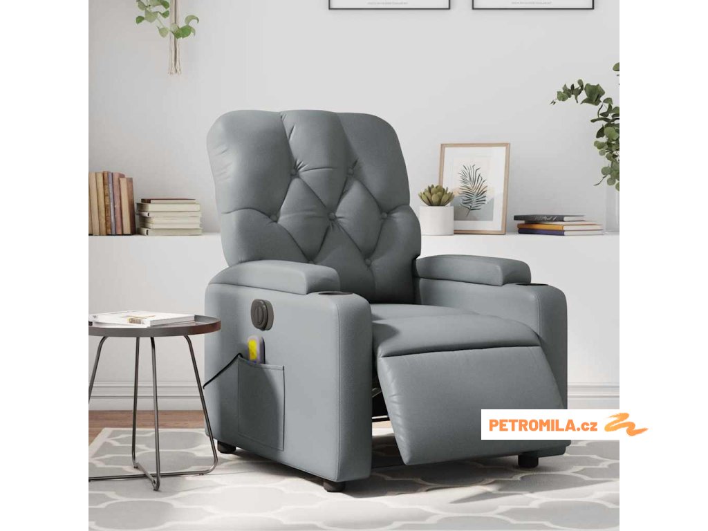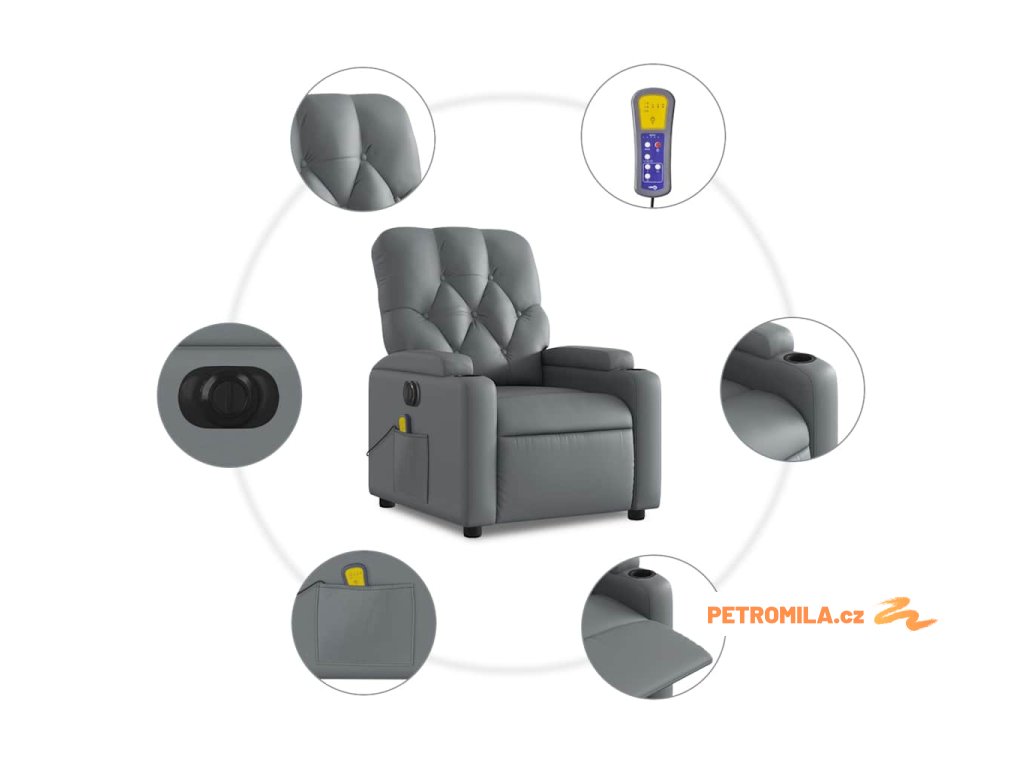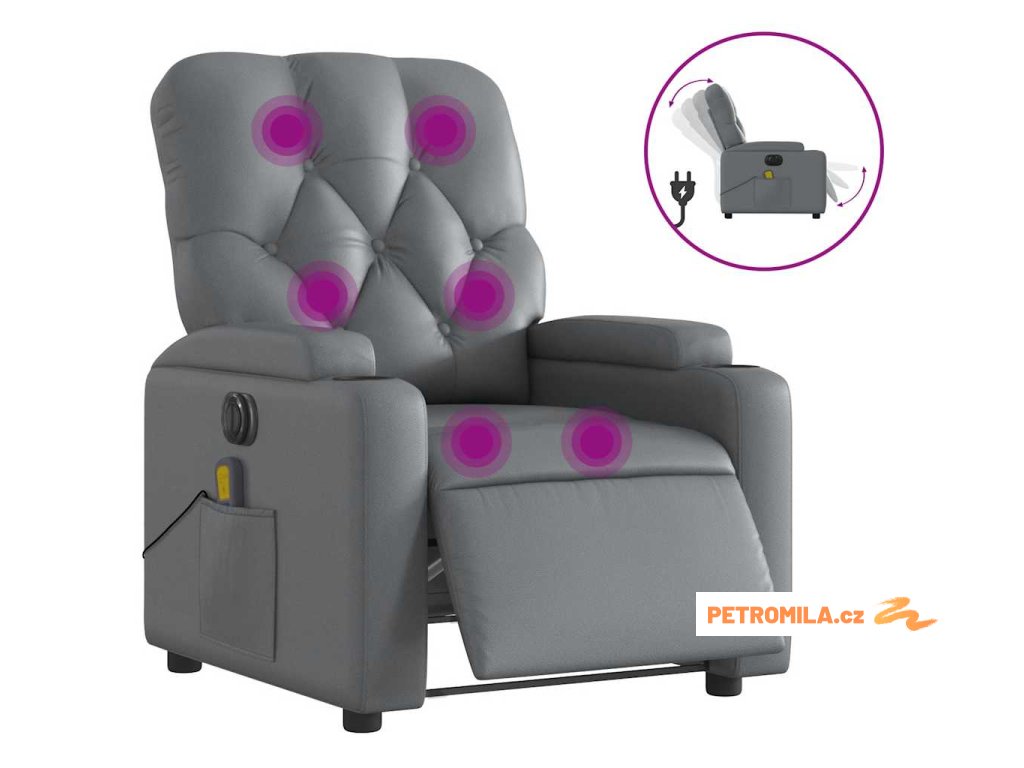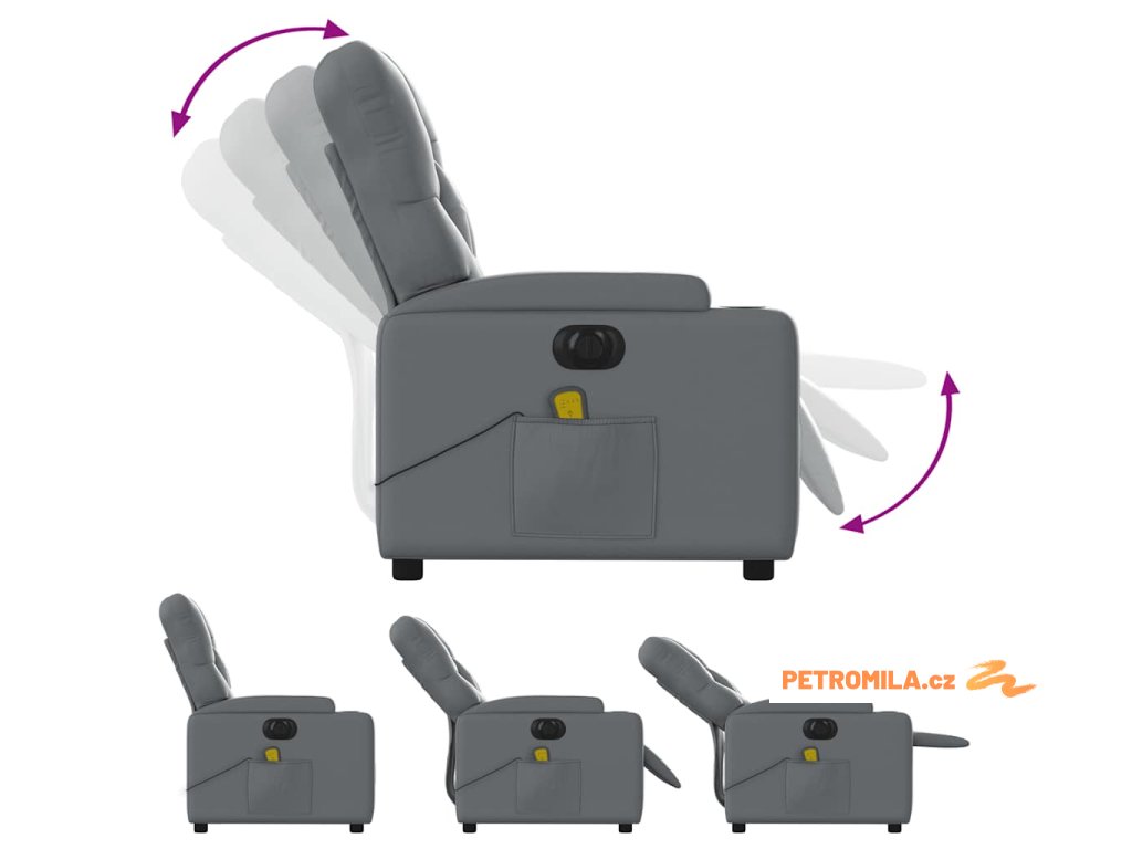 Elektrické masážní polohovací křeslo šedé umělá kůže