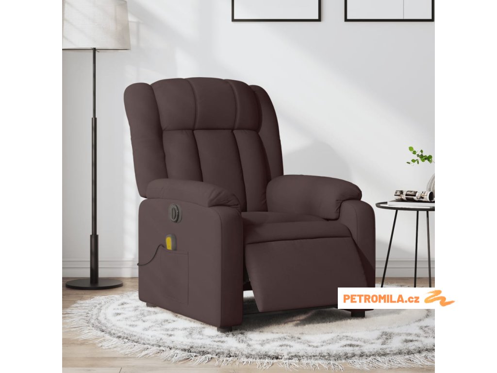 Elektrické masážní polohovací křeslo tmavě hnědé textil