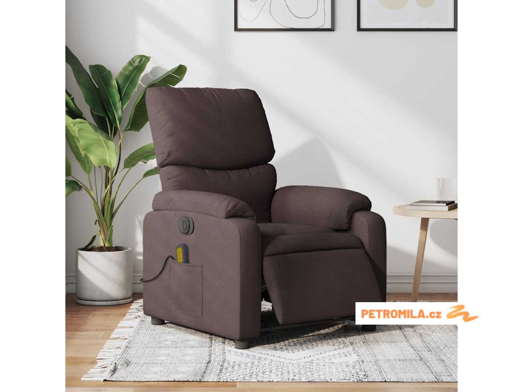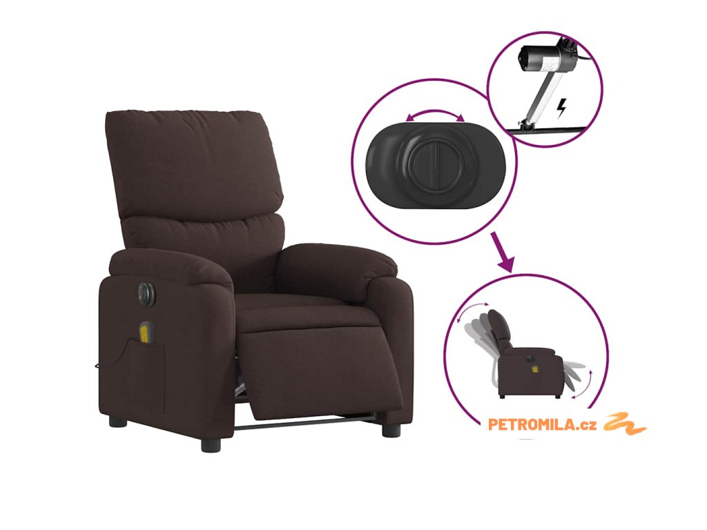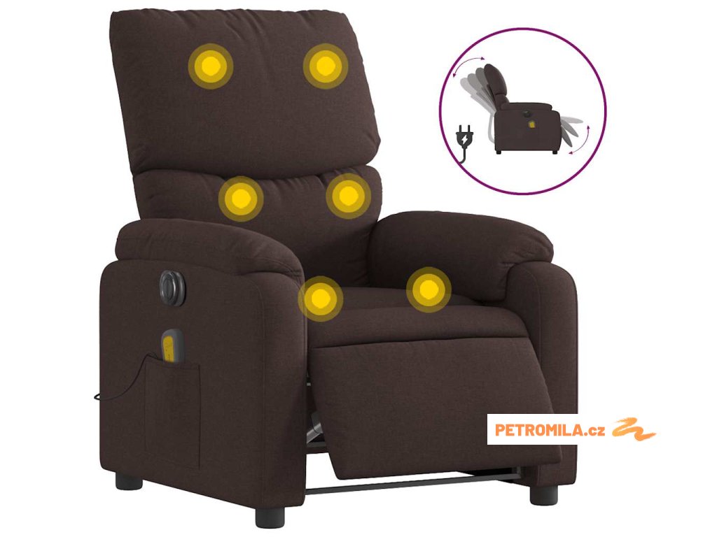 Elektrické masážní polohovací křeslo tmavě hnědé textil