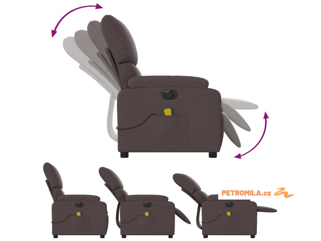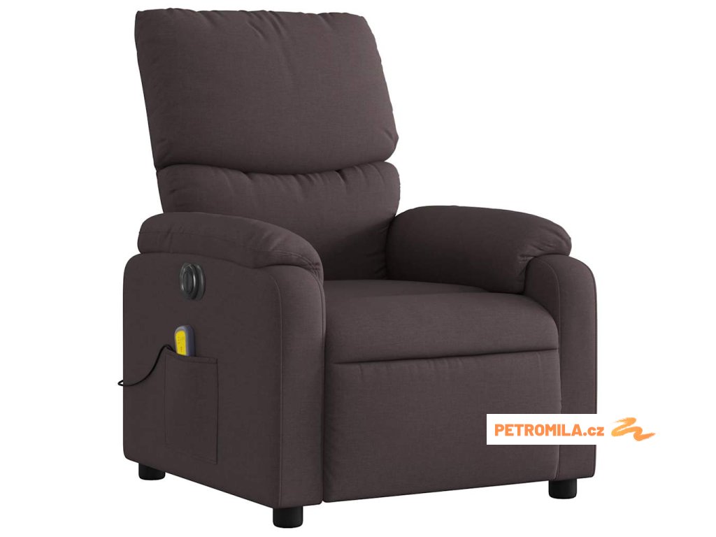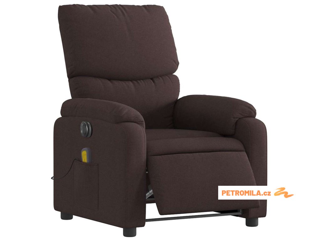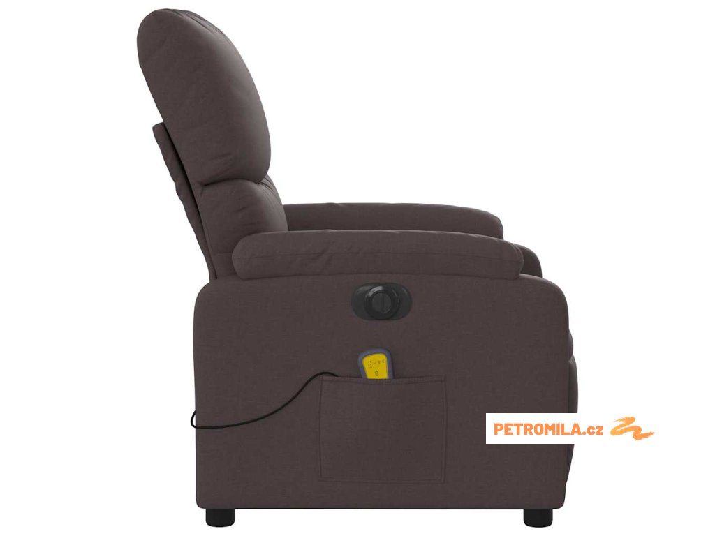 Zvedací masážní polohovací křeslo tmavě hnědé textil