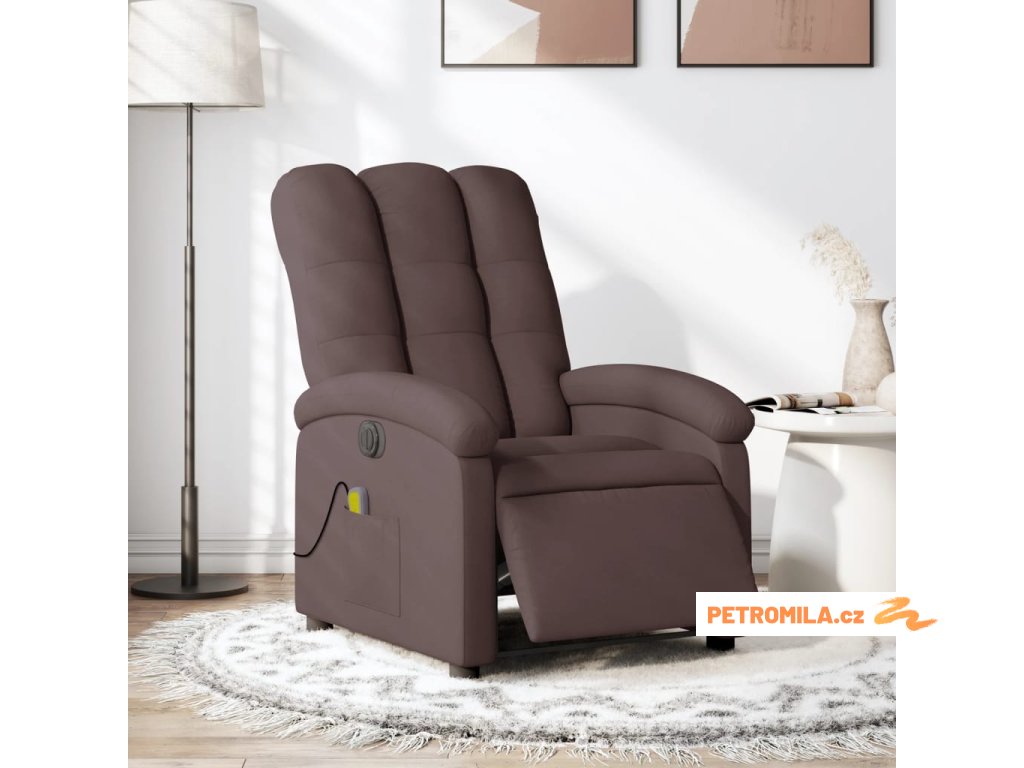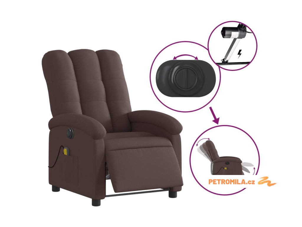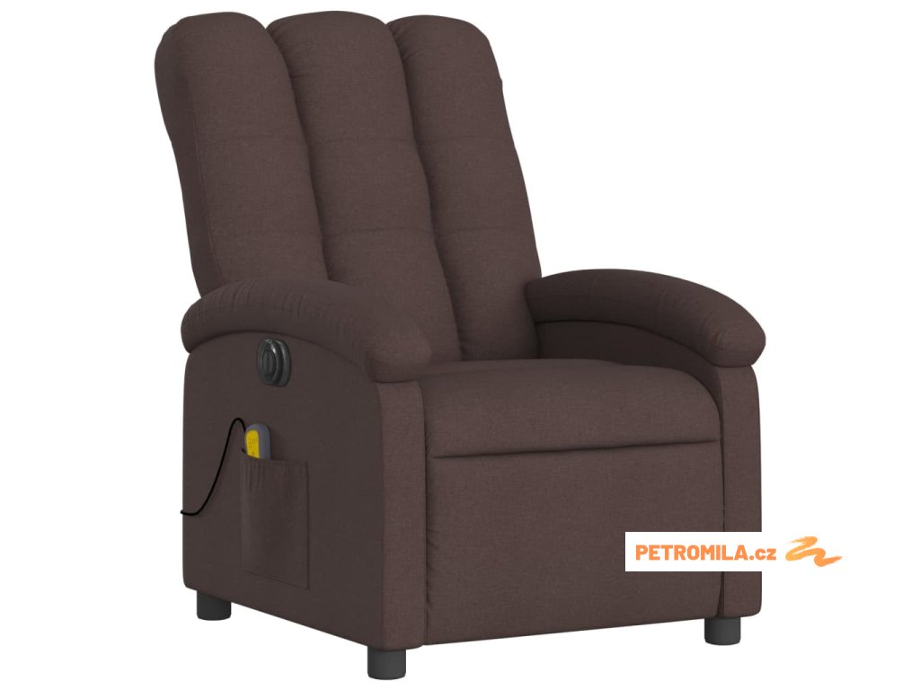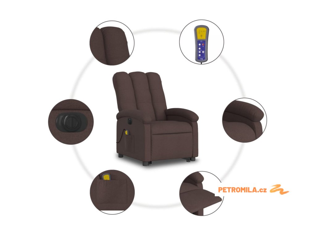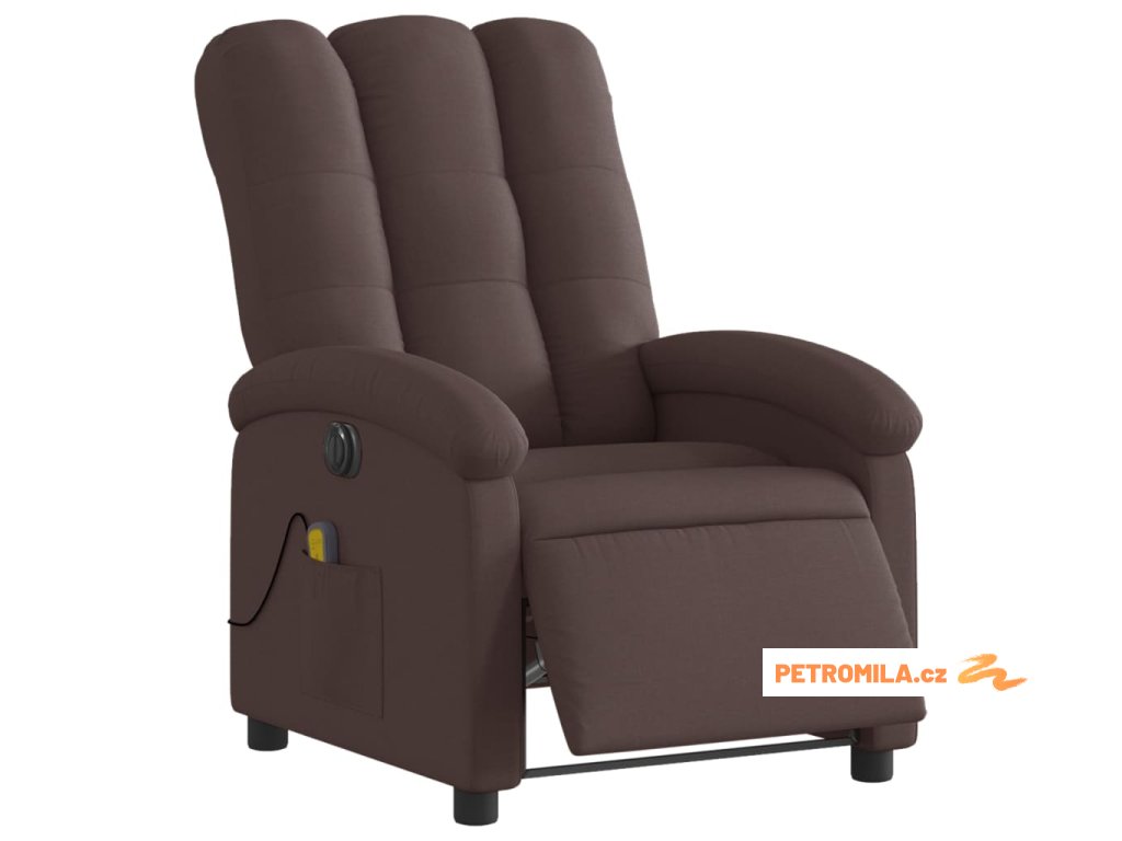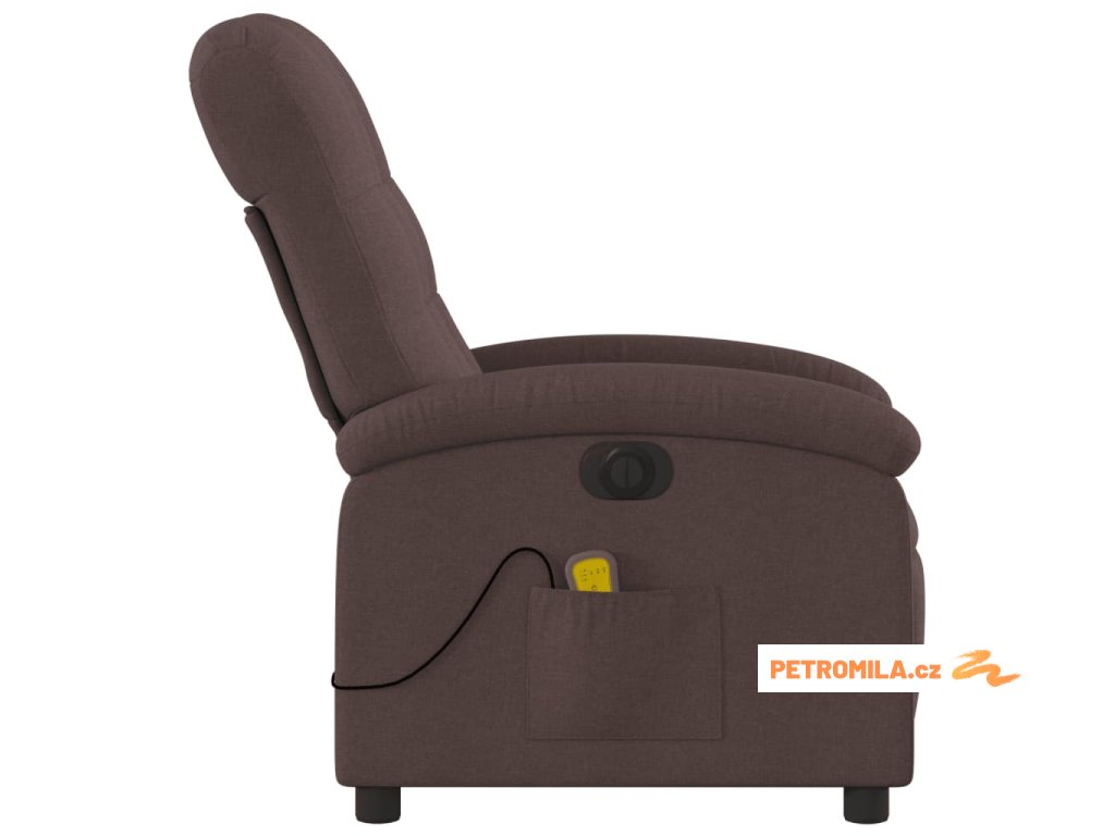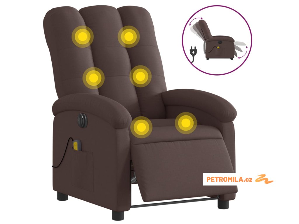 Elektrické masážní polohovací křeslo tmavě hnědé textil
