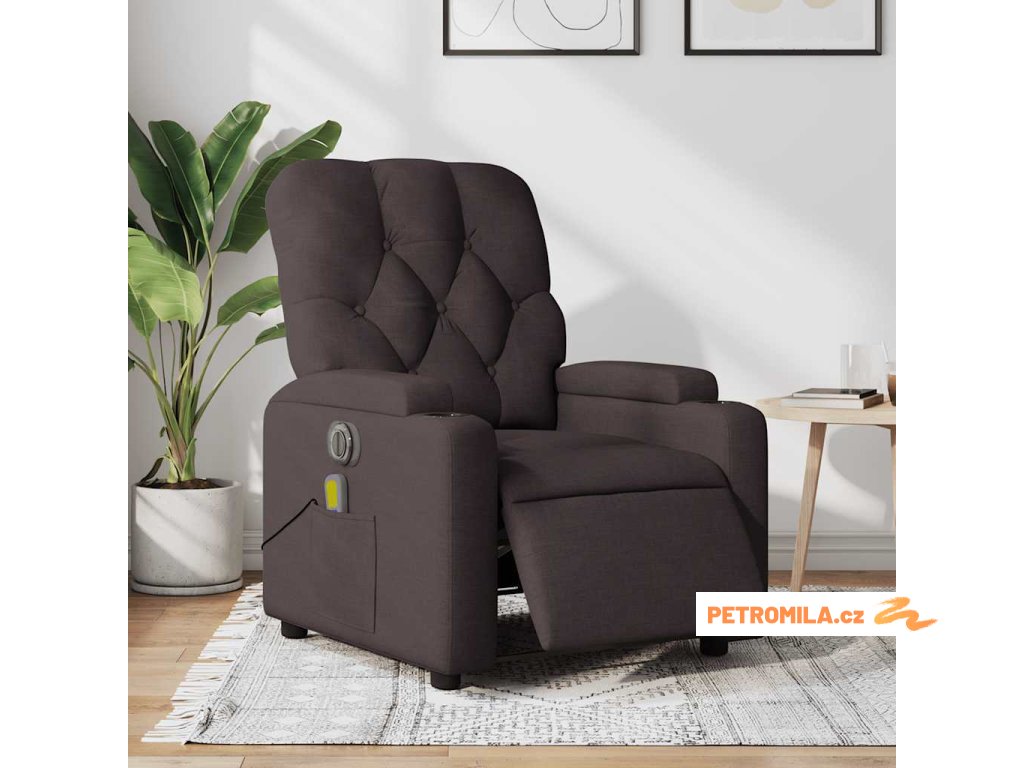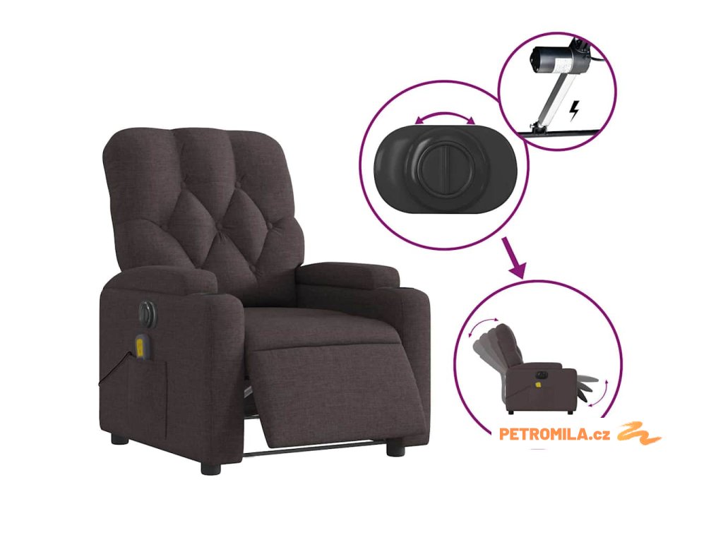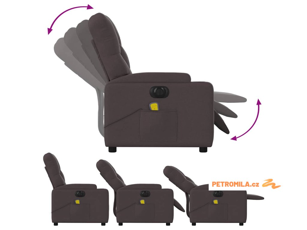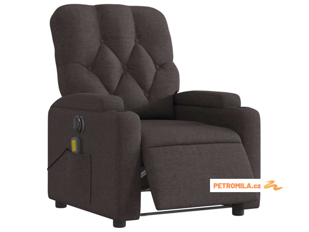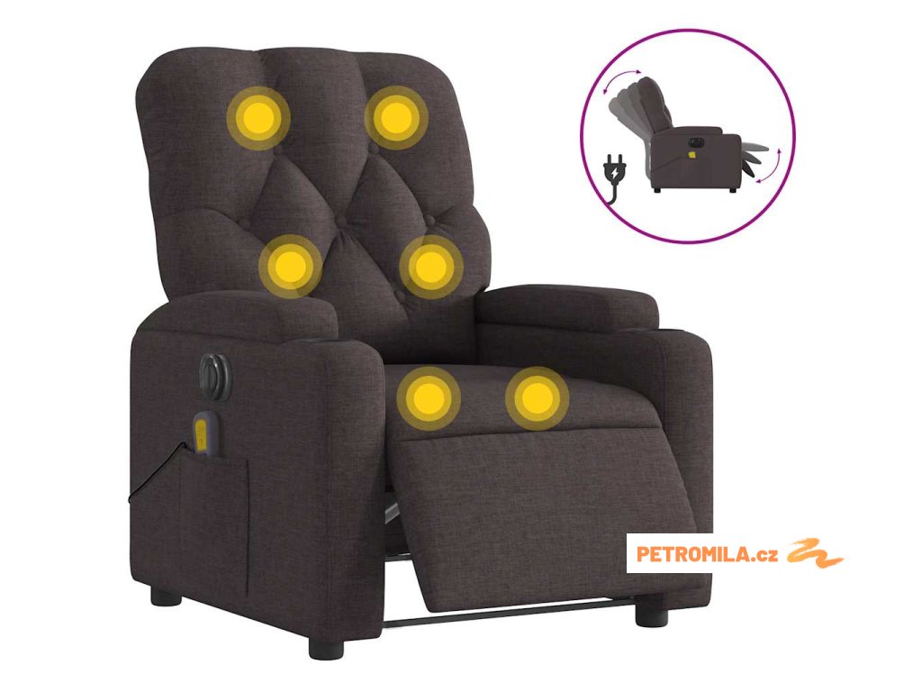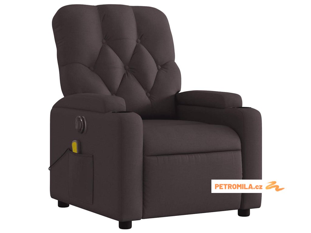 Elektrické masážní polohovací křeslo tmavě hnědé textil