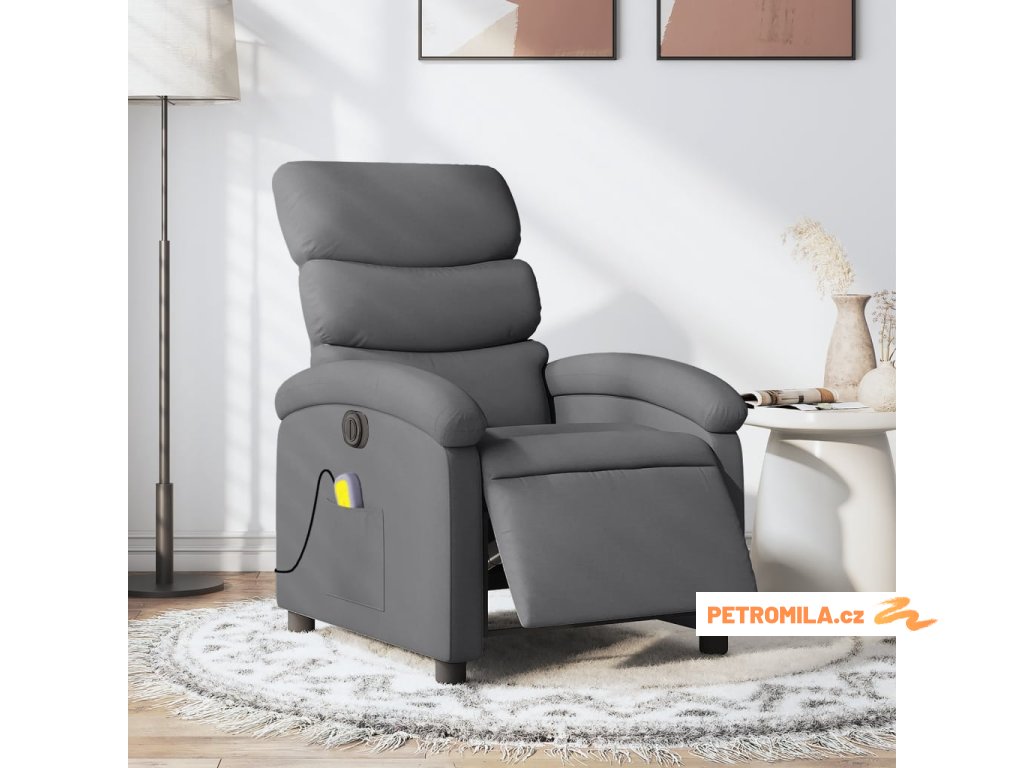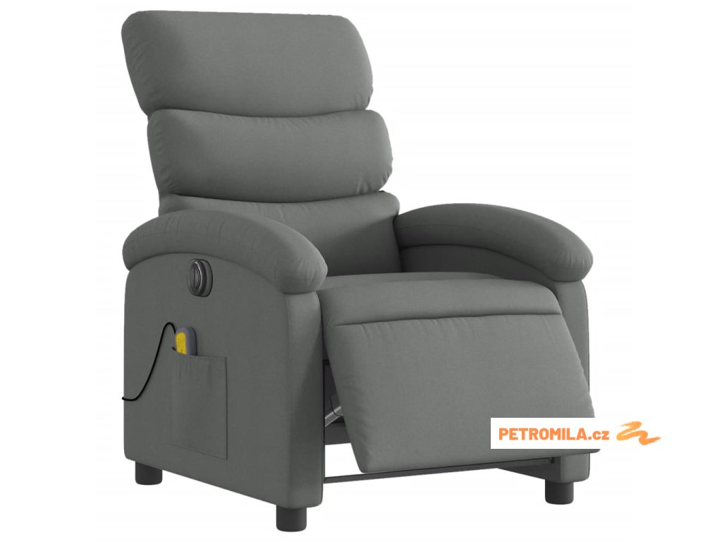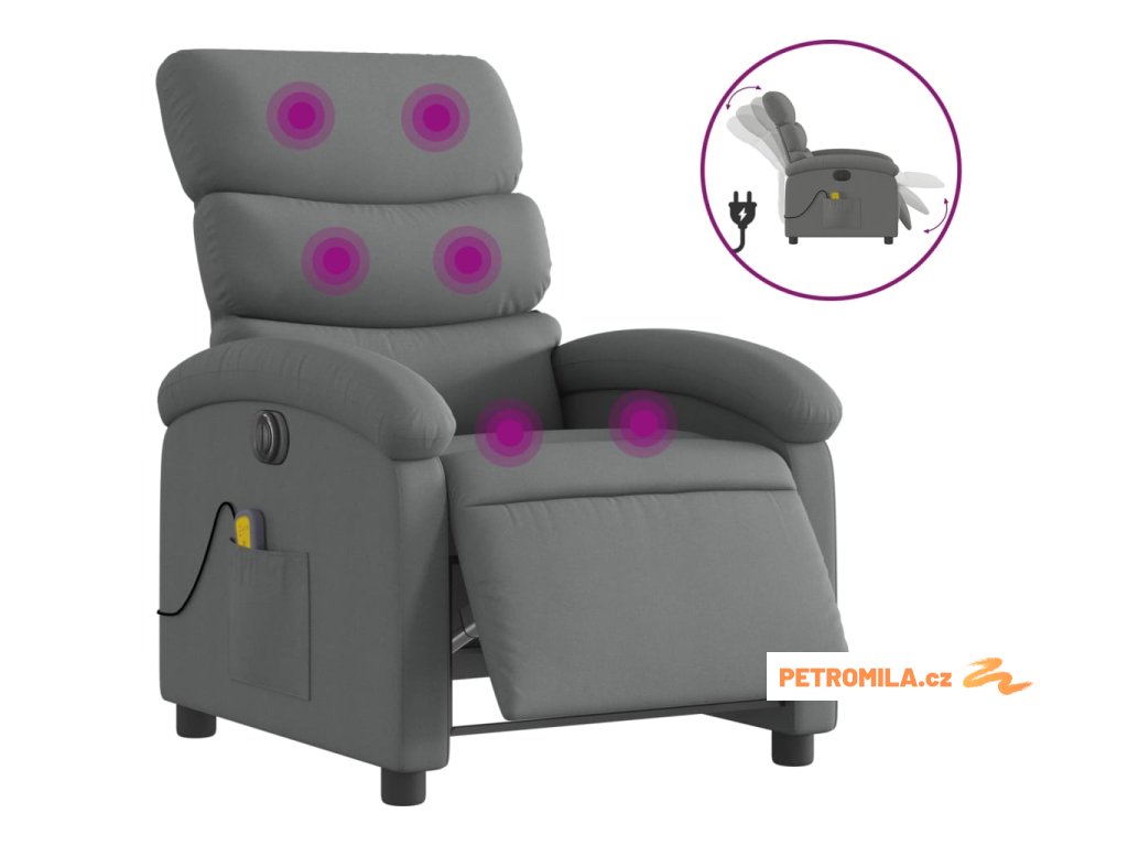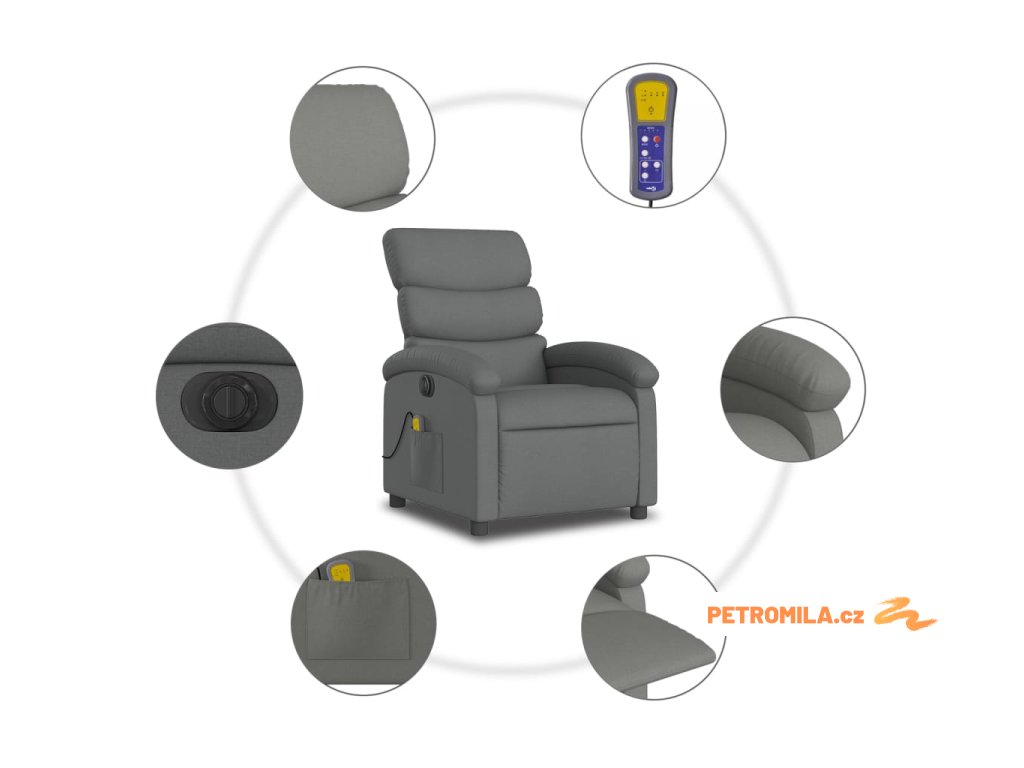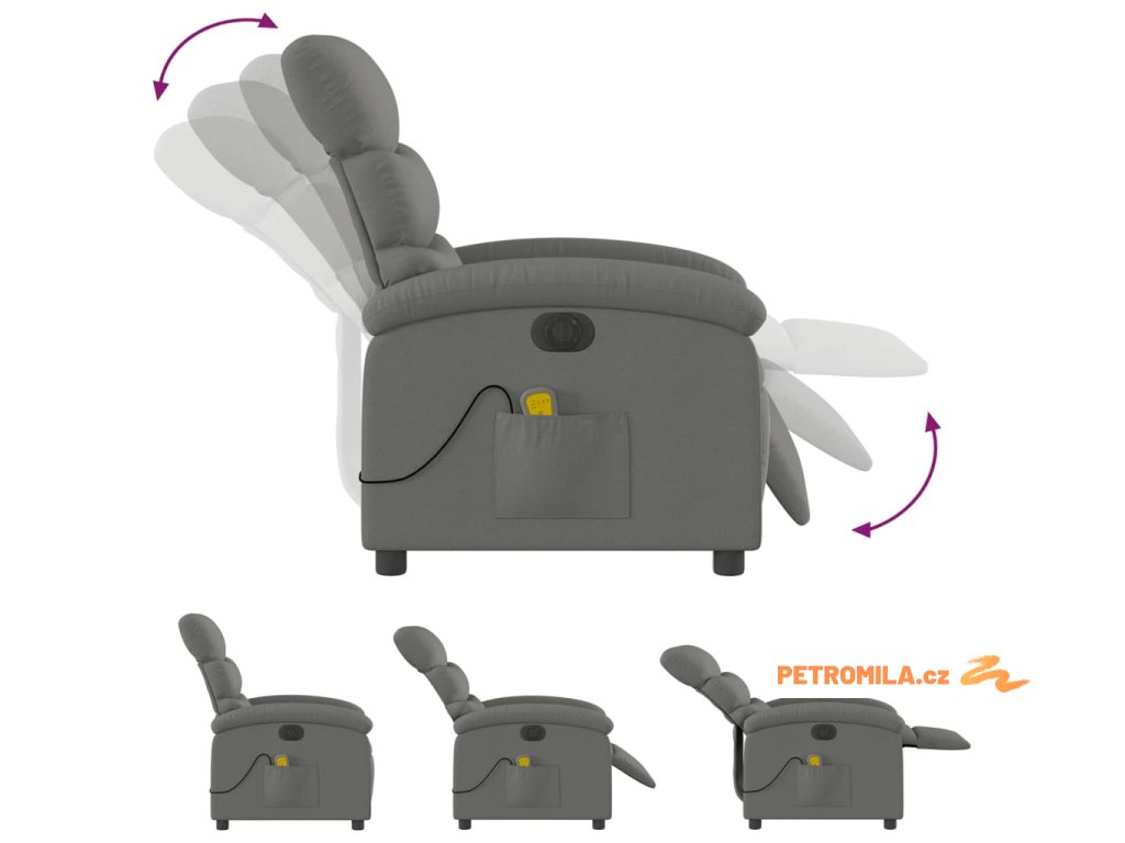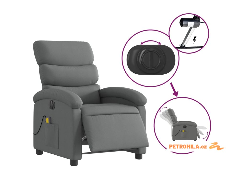 Elektrické masážní polohovací křeslo tmavě šedé textil
