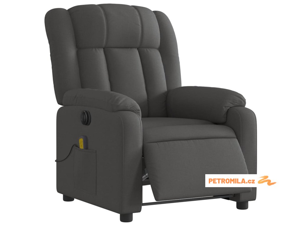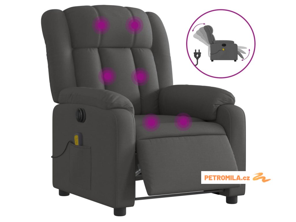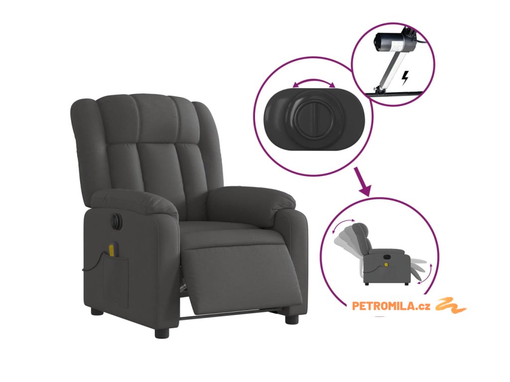 Elektrické masážní polohovací křeslo tmavě šedé textil