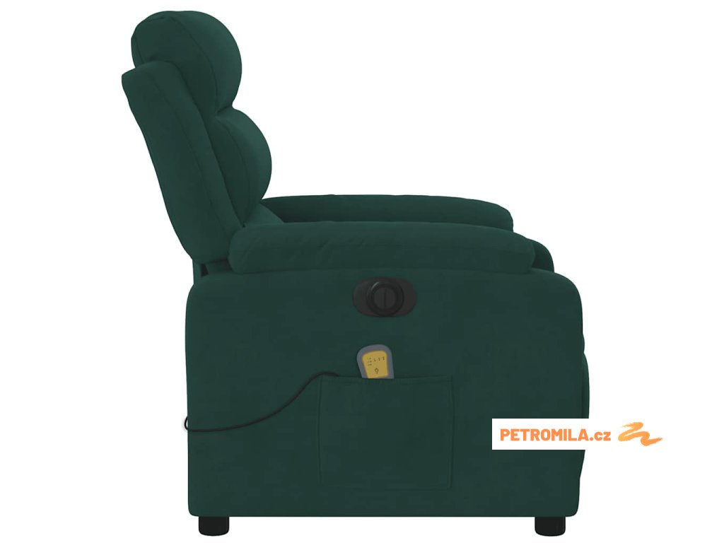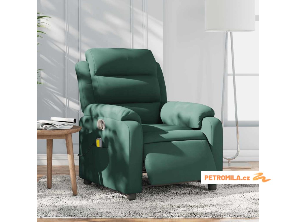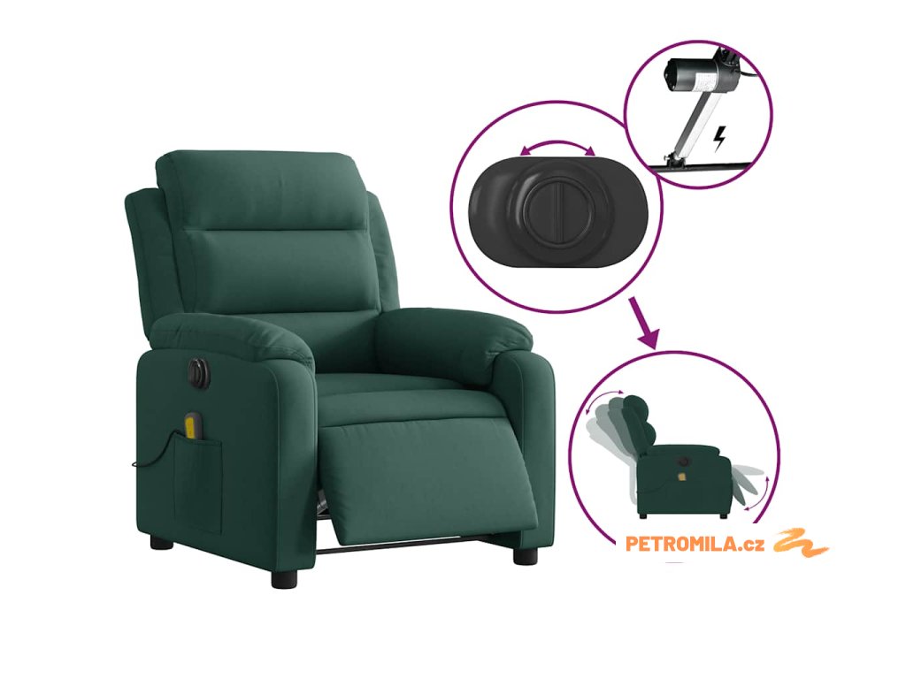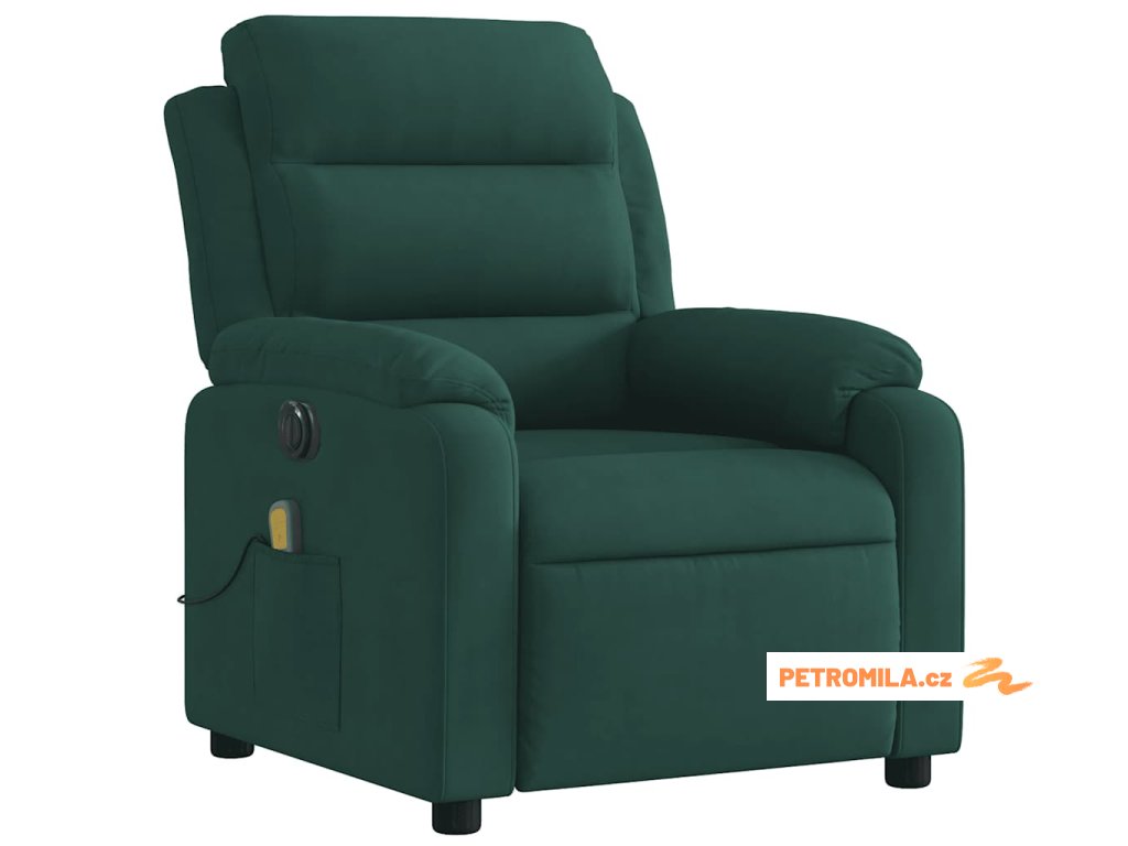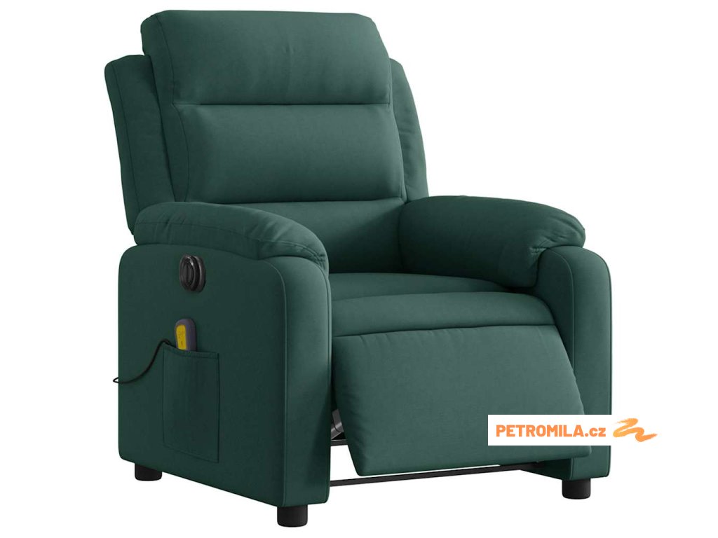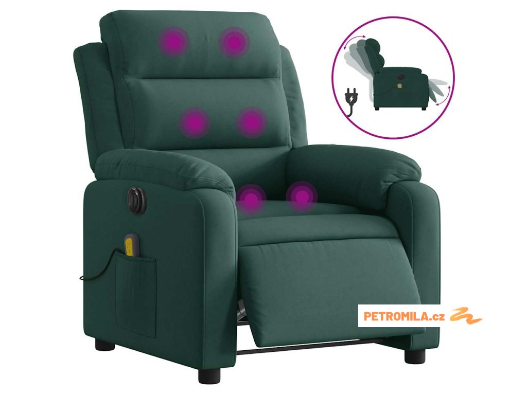 Elektrické masážní polohovací křeslo tmavě zelené samet