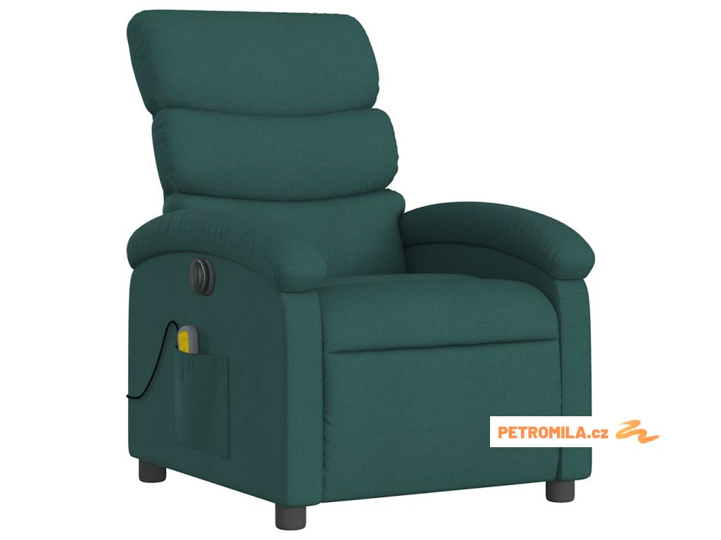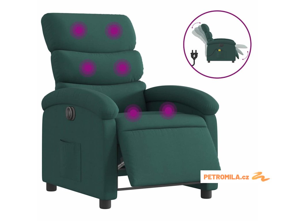 Elektrické masážní polohovací křeslo tmavě zelené textil