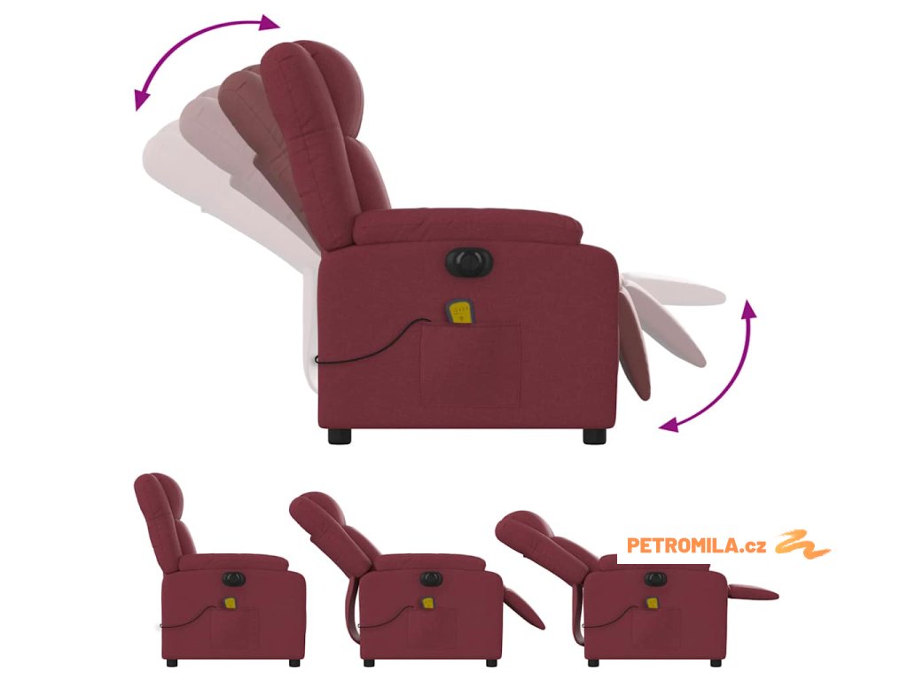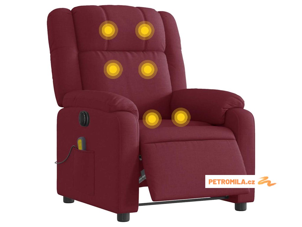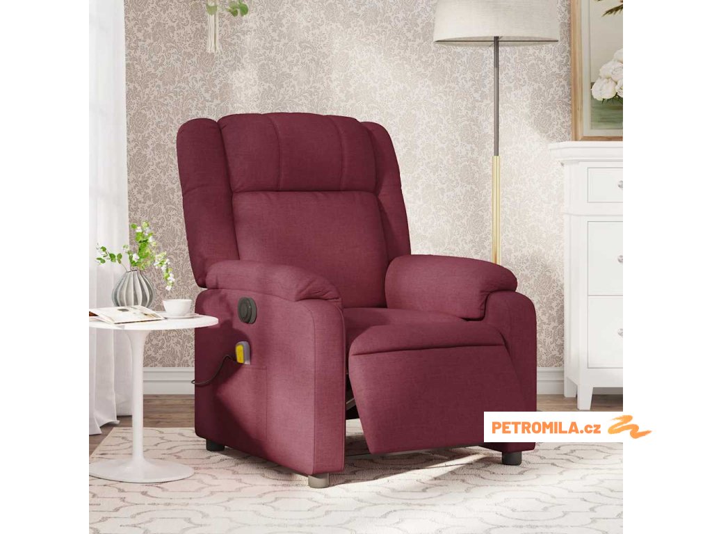 Elektrické masážní polohovací křeslo vínové textil