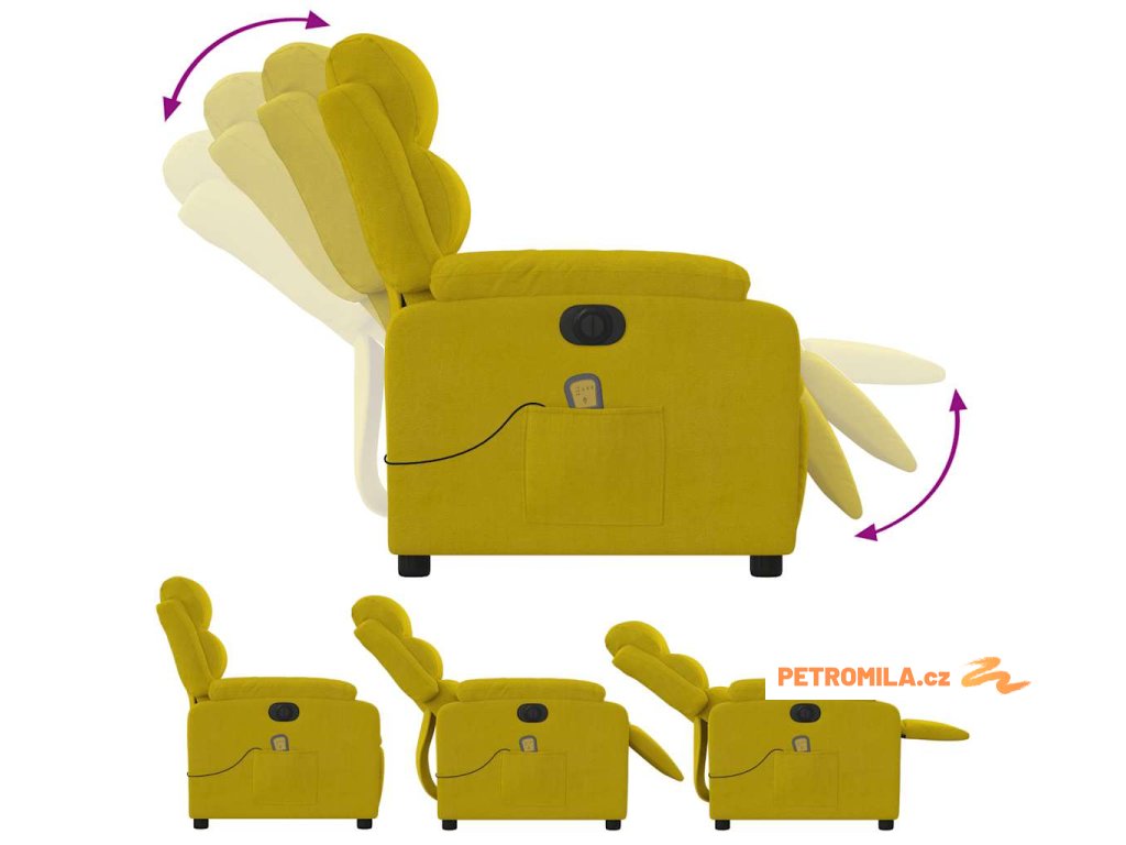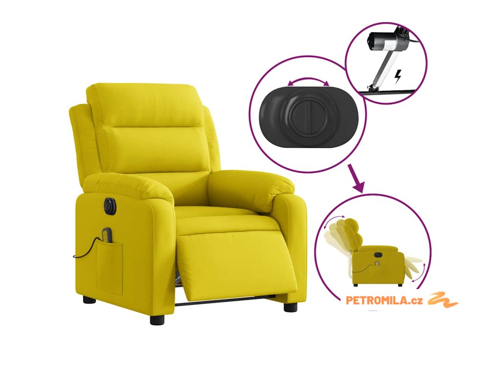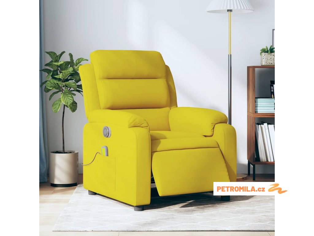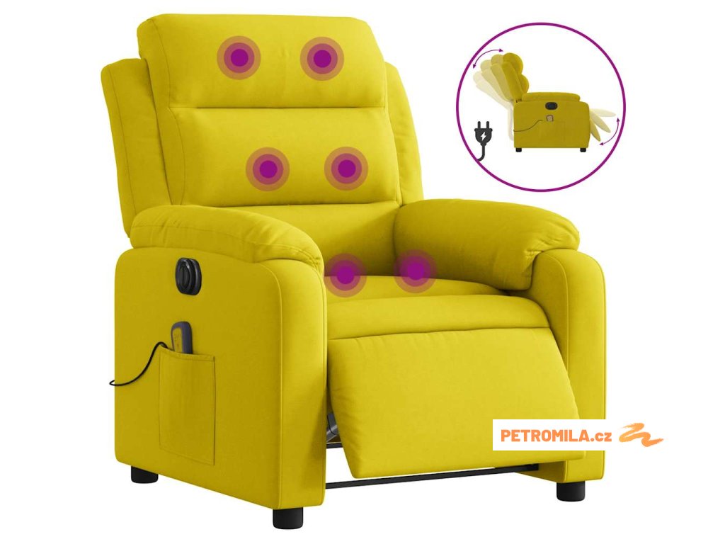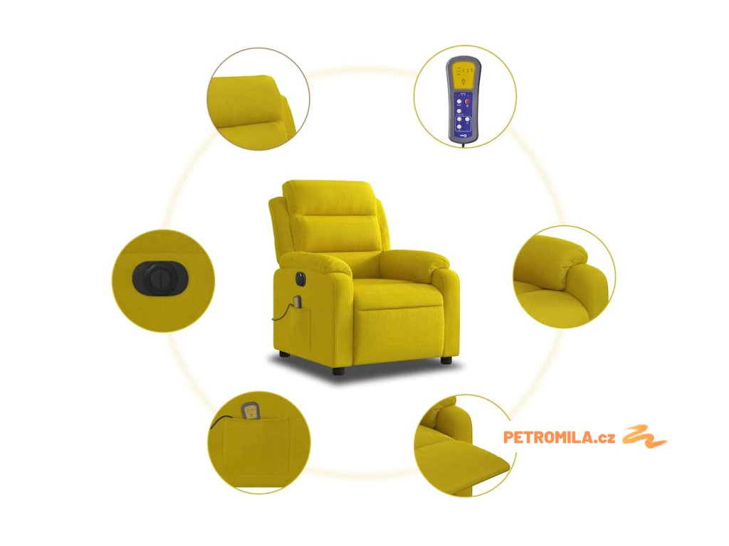 Elektrické masážní polohovací křeslo žluté samet