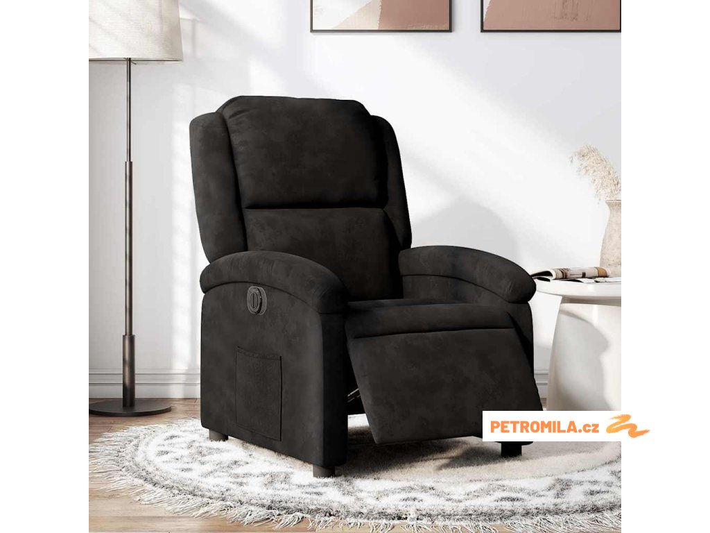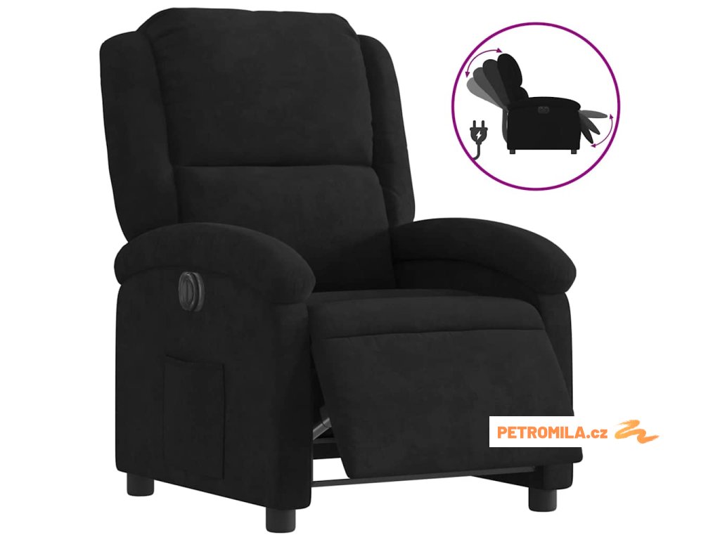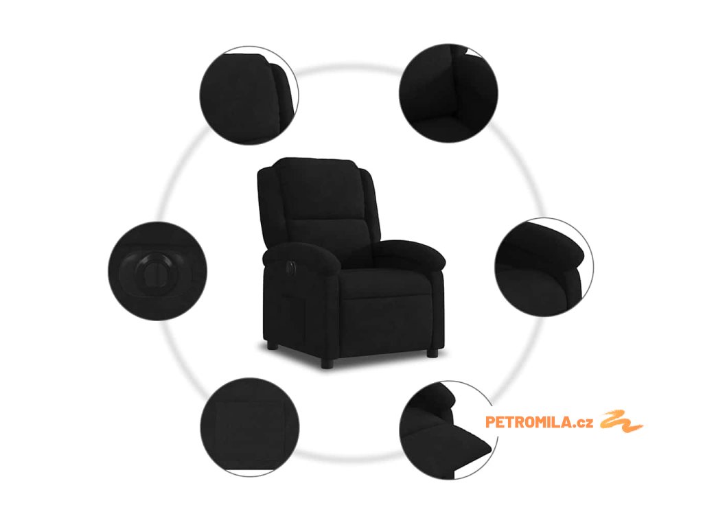 Elektrické polohovací křeslo černé samet