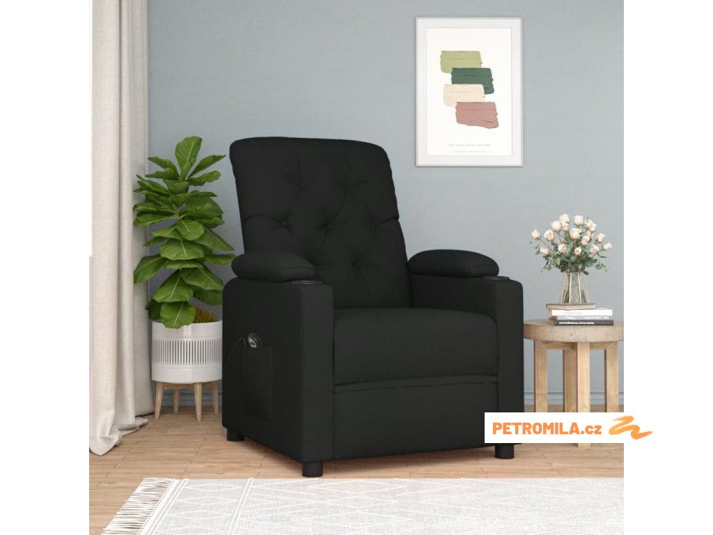 Elektrické polohovací křeslo černé textil