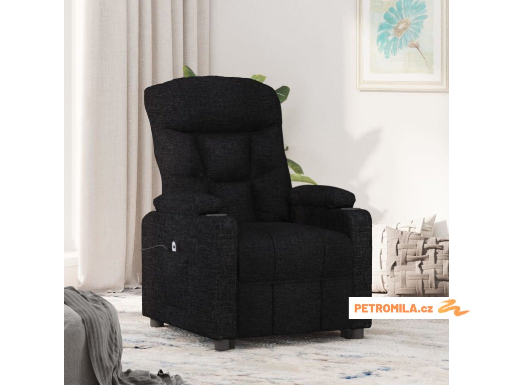 Elektrické polohovací křeslo černé textil