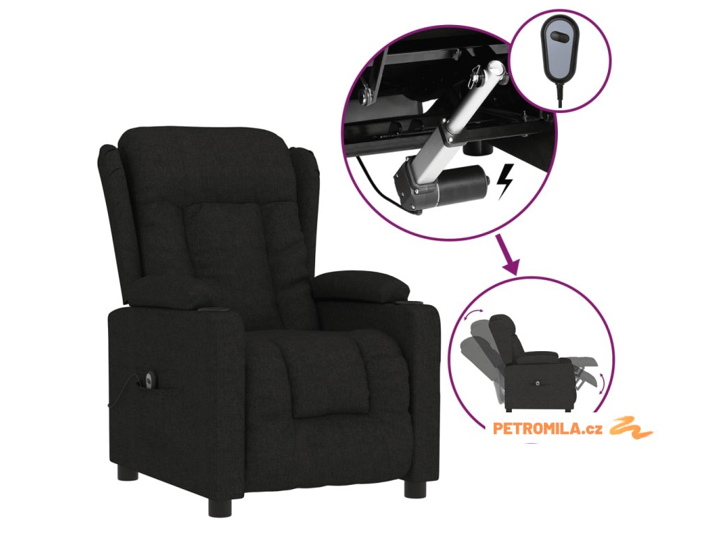 Elektrické zvedací masážní polohovací křeslo tmavě šedé textil