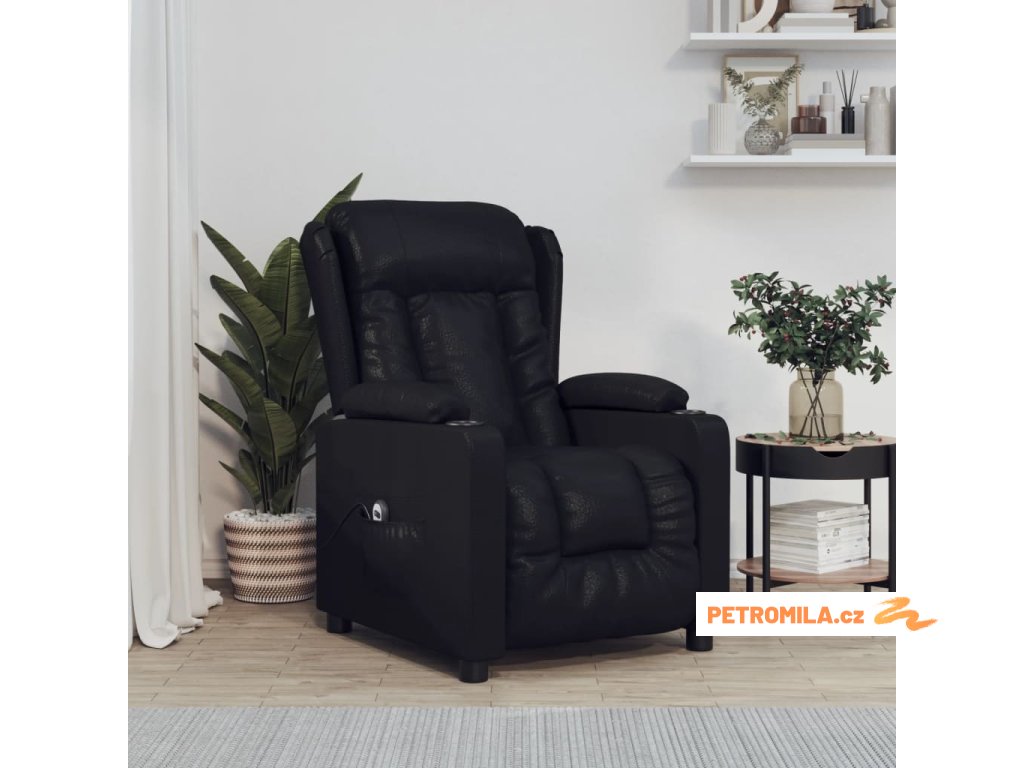 Elektrické polohovací křeslo černé umělá kůže